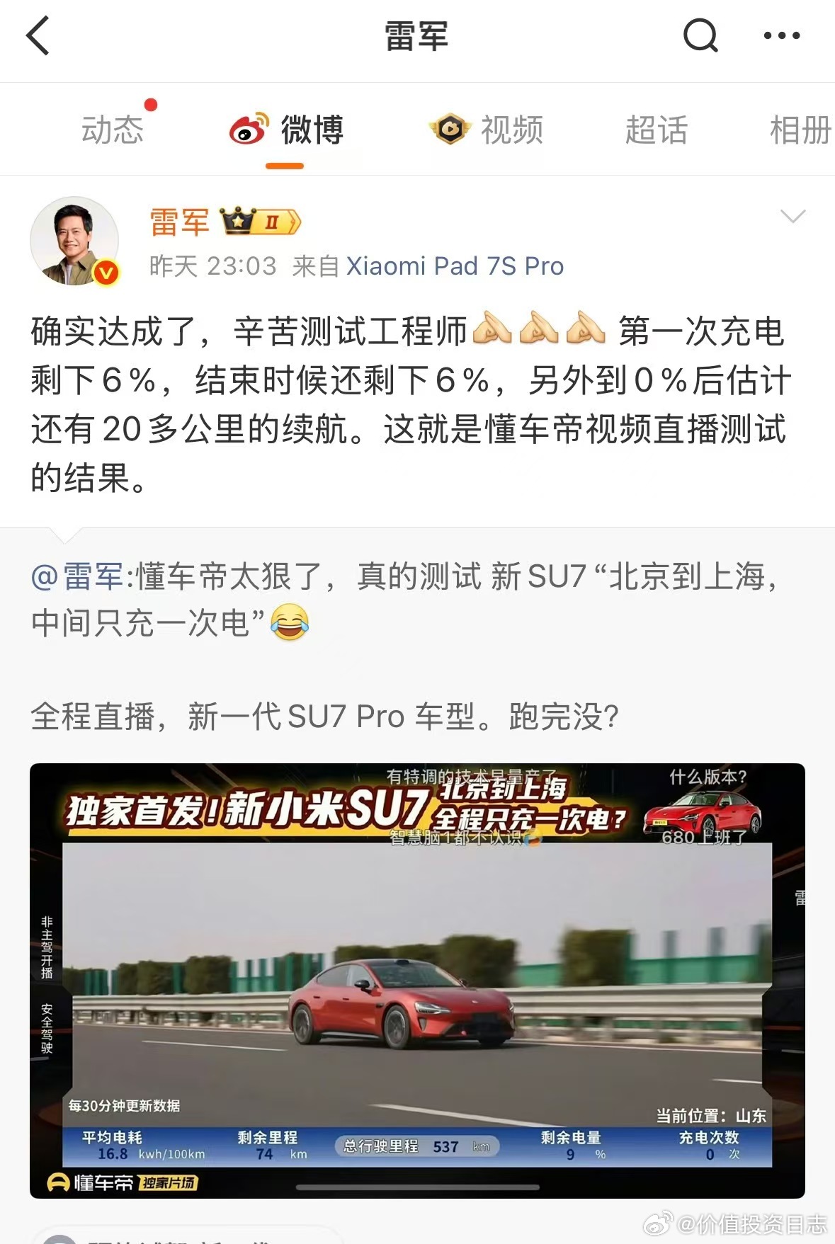 一次测试不能代表所有场景,但它至少让人看到,在高速这个纯电车的传统弱项上,新车确实在往前推。雷军回应媒体北京上海高速续航实测