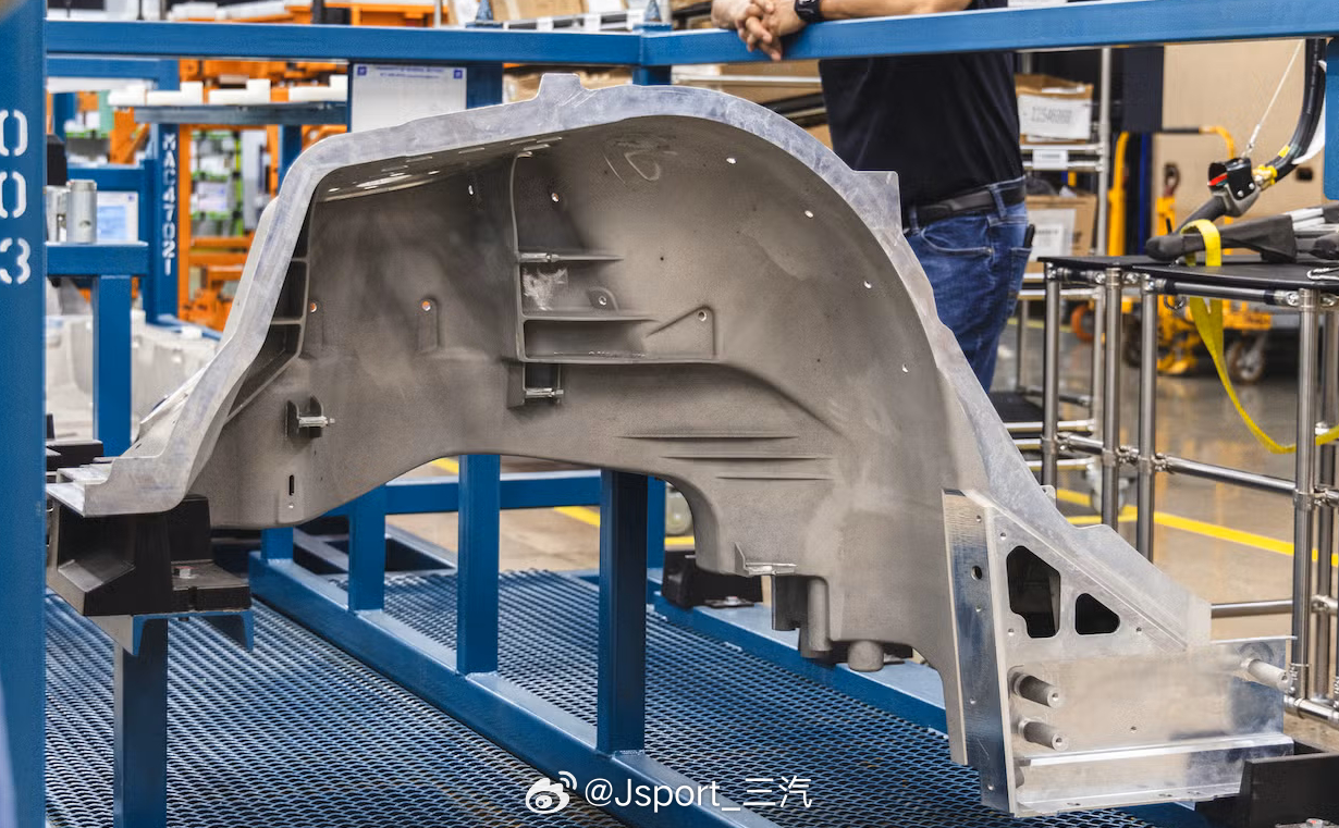 这个集成了后轮罩/边梁/塔顶的大型低压铸造件由TEI负责重27公斤,尺寸为58.5 x 22.5 x 33.3英寸铝合金成分保密,