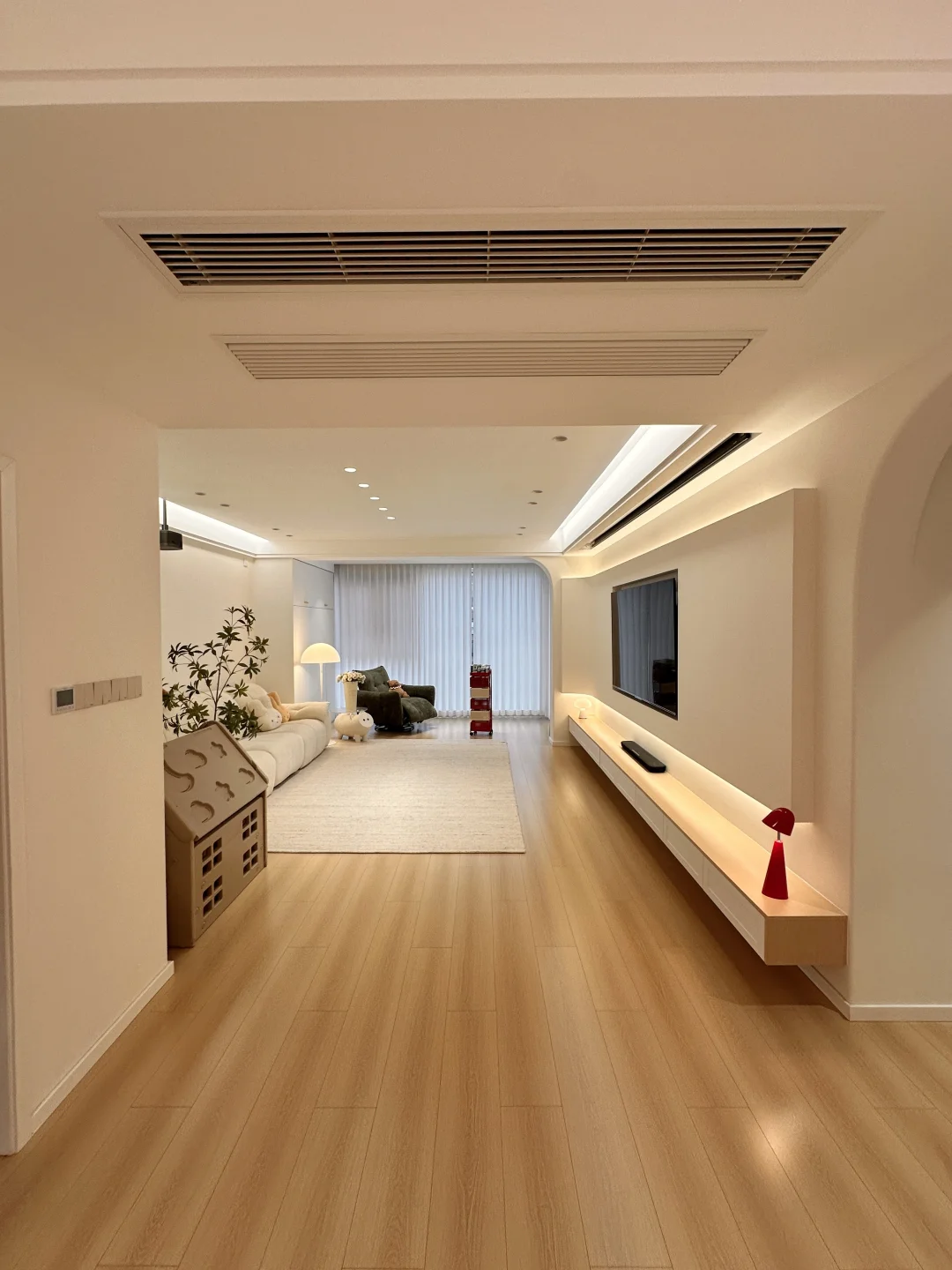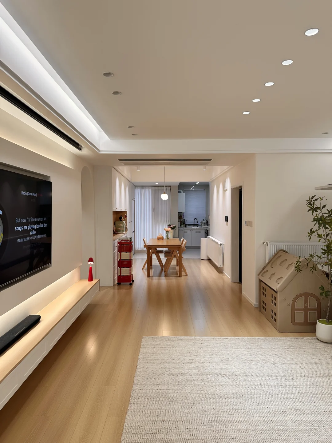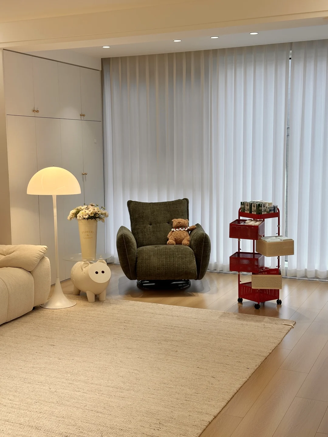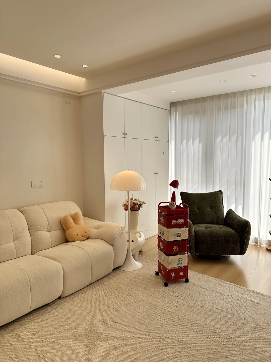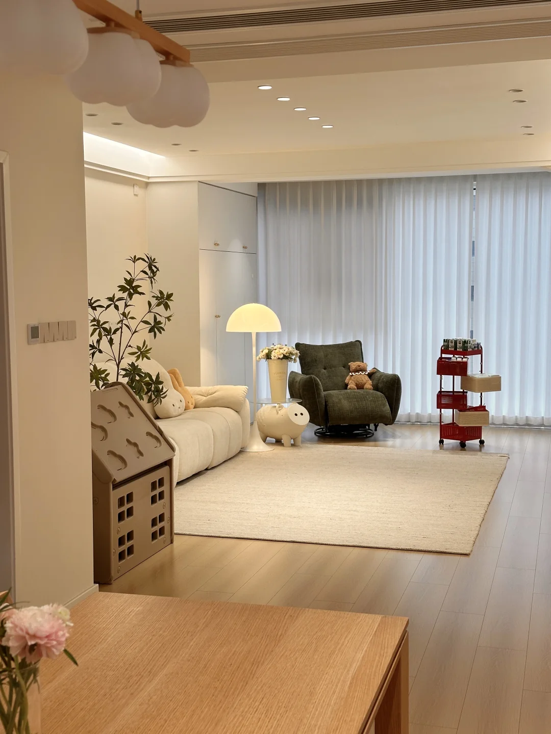 一家三口在小县城过着慢生活,家虽然不大,但装修的足够温馨了,极简原木风,木地板通铺,无主灯明亮又很有氛围感~ 软装根据生活需求慢慢地在添置,最近入手了弗林斯红白小推车,红白撞色放在家里特别亮眼,五层抽屉,分层摆放各种小零食,摆放整齐,底部带滑轮,追剧时推到沙发旁边,推到餐桌旁就是一个超方便的餐边收纳,小小一个不占地,还超能装~