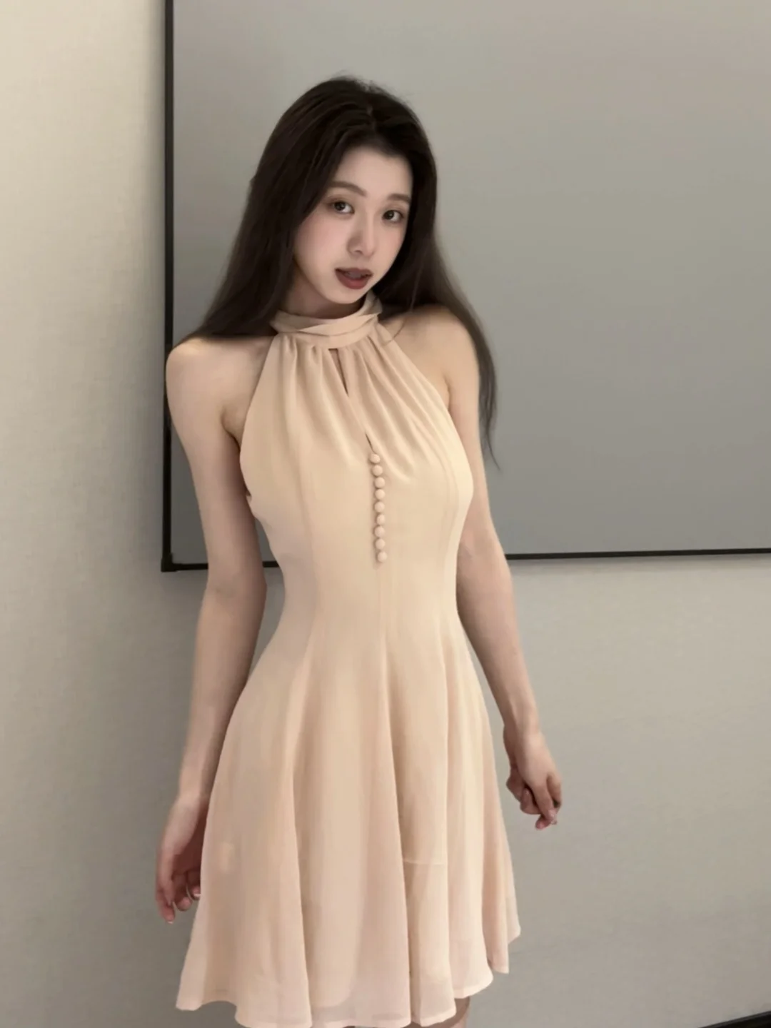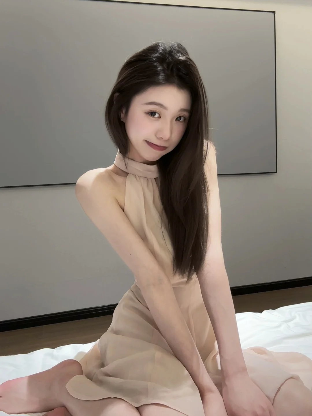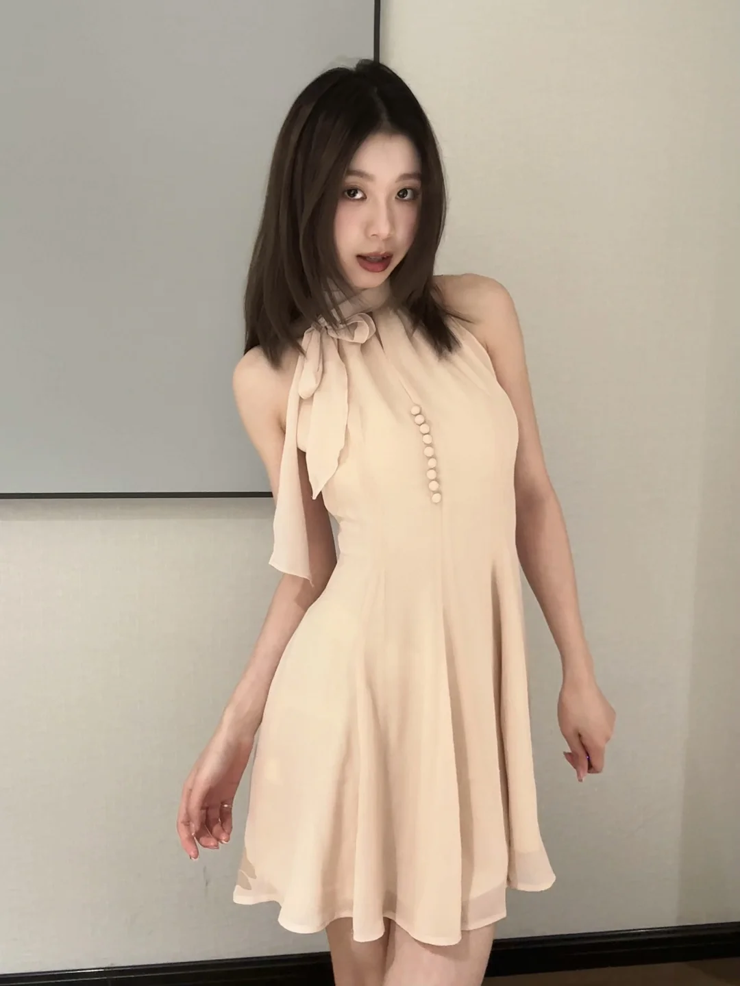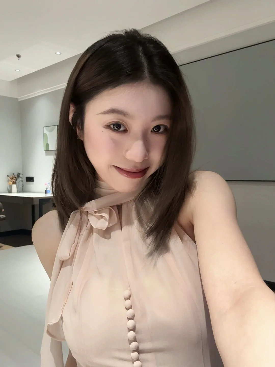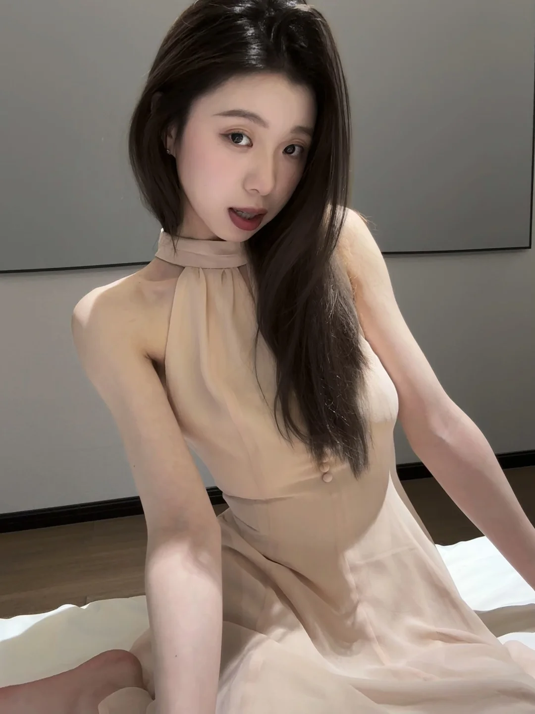 裸粉连衣裙➕飘带~ 纯欲天花板温柔到发光✨ 有没有发现哪里不一样👀