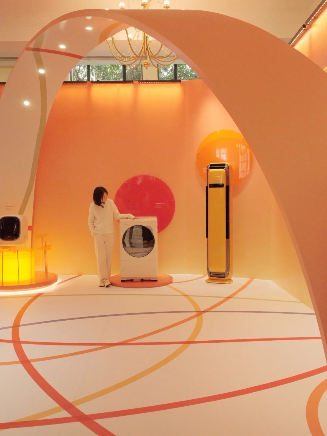 先说那抹橙。是敦煌的那种橙。不张扬却沉静,落在法式冰箱的门板上。旁边是奶酪白的洗衣机,流沙金的空调。它们安静地伫立着,但你能感觉到它们在呼吸
