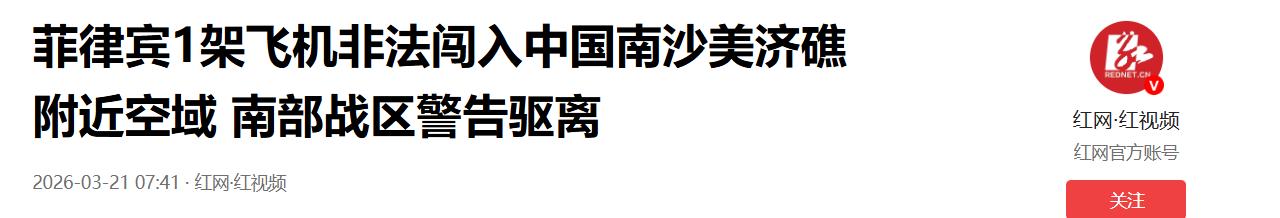 短短72小时内,中方主权竟连续两次遭挑衅!南部战区罕见在深夜紧急发声。 3月18日起,菲律宾突然派两架C-208机,非法闯入中方黄岩岛附近空域,南部战区第一时间组织兵力,干脆利落地对越界飞机进行警告驱离。 结果人家根本没长记性。不到72小时,3月20日菲律宾又派一架同型飞机,这频率和胆量,挑衅意味极其明显。 面对这种可耻的行为,南部战区深夜直接发布公告,警告菲律宾立刻停止侵犯中方主权,停止一切挑衅。 但菲律宾这波操作明显换了套路,以前派船在黄岩岛碰瓷,每次都被中方海警按在地上摩擦。 现在海路走不通就开始走空路,企图用公务机搞空中突袭,规避海上的强硬拦截。 马尼拉哪来这么大底气?美国就是最大的幕后黑手。去年白宫砸上亿美元升级在菲军事设施,巴拉望岛空军基地距仁爱礁仅160公里,摆明了是干预南海的“前沿阵地”。 美军动作不止修基地,美海军陆战队就把MQ-9无人机临时部署到菲律宾。更过分的是,美军还借军演的机会,把“堤丰”中程弹道导弹系统也搬了过去。 这套系统不仅让菲律宾有了远程打击能力,更让美菲具备监控甚至封锁海峡的能力。 日本也没闲着,退役巡逻船送给菲律宾海警,海岸监视雷达援助菲律宾。日本想让菲律宾在南海闹事,好减轻自己在东海方向的战略压力。 菲律宾政府也是打得一手好算盘。国内矛盾重重,那就配合美日战略在南海挑衅,既能转移视线延续政治生命,又能趁西太平洋局势混乱。 菲律宾甘当美日“棋子”,企图借外部势力侵犯中方主权,纯粹是痴心妄想。 中方维护南海和平的意志坚如磐石,若菲方继续执迷不悟,等待他们的必将是严厉的反制。