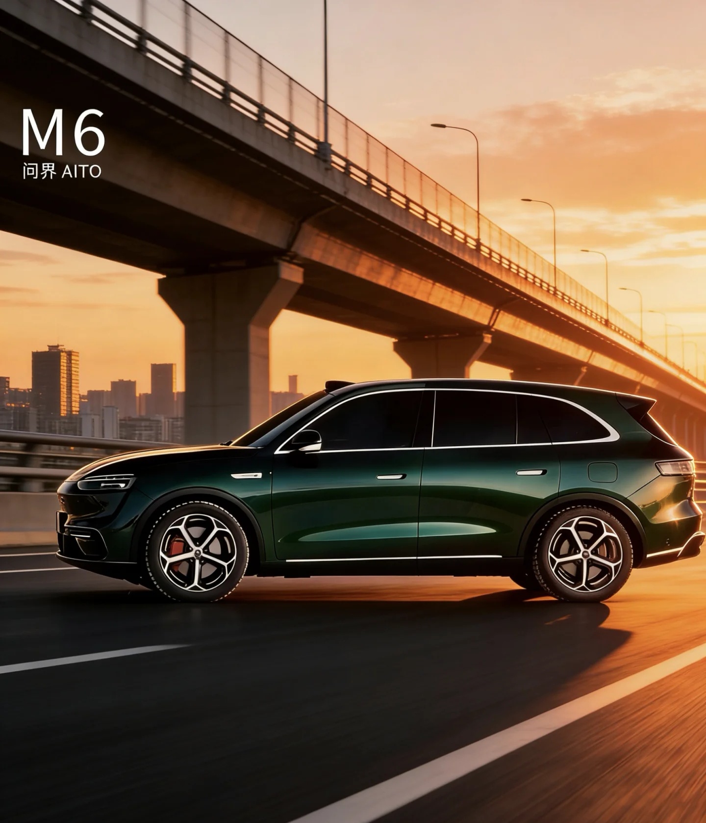 在新能源与智能驾驶并行的时代,问界M6以华为全栈技术为基石,重新定义25万级家用SUV的价值标杆。它不止是代步工具,更是融合科技、空间、性能与安全的移动智慧空间,为家庭出行与品质生活带来全方位升级。 外观上,问界M6采用年轻化运动设计语言,4960mm×1985mm×1736mm车身搭配2950mm超长轴距,气场舒展且空间越级。星耀碎钻大灯、主动式风道格栅与星光贯穿式尾灯相得益彰,半隐藏式门把手与大尺寸轮毂进一步提升精致感,风阻与颜值双优,无论城市穿梭还是长途出行,都能成为视线焦点。 智能是问界M6的核心灵魂。全系标配华为乾崑ADS 4.0高阶智驾,搭载顶置192线激光雷达与后向固态雷达,实现360°无死角感知,支持无图城市NCA、高速NOA与跨层代客泊车,复杂路况从容应对,新手也能轻松驾驭。座舱搭载鸿蒙5.0系统,15.6英寸高清随动屏、AR-HUD与多屏联动,配合四音区精准语音交互,手机应用无缝流转,操作流畅便捷,打造沉浸式数字座舱。 动力与续航兼顾实用与激情,提供增程与纯电双选择。增程版亏电油耗低至4.2L/100km,综合续航突破1400公里,长途自驾无焦虑;纯电版基于800V高压平台,超快充补能高效,四驱版零百加速4.5秒,性能媲美豪华运动SUV。全系四驱加持,操控稳定,多种路况轻松应对。 空间与舒适贴合家庭需求,大五座布局宽敞通透,后排乘坐与储物空间越级,座椅材质考究,隔音与底盘调校兼顾舒适与支撑,长途乘坐不易疲惫。从日常通勤到周末出游,从城市代步到跨省远行,问界M6以全能表现适配全场景出行。 从科技配置到动力性能,从空间设计到安全守护,问界M6以诚意满满的标配与领先技术,打破同级壁垒。它以智能平权、舒适越级、性能无忧的实力,成为家用SUV的优选,让每一次出发都安心、便捷、充满乐趣,开启智慧出行新体验。