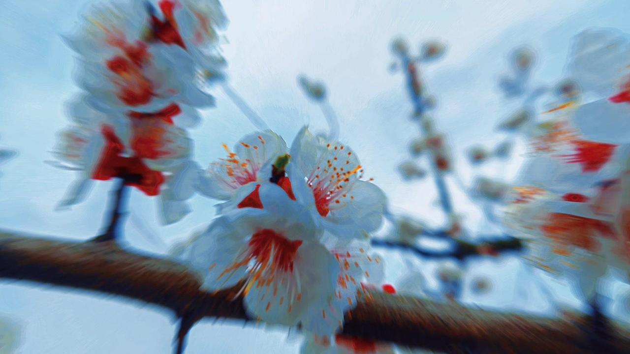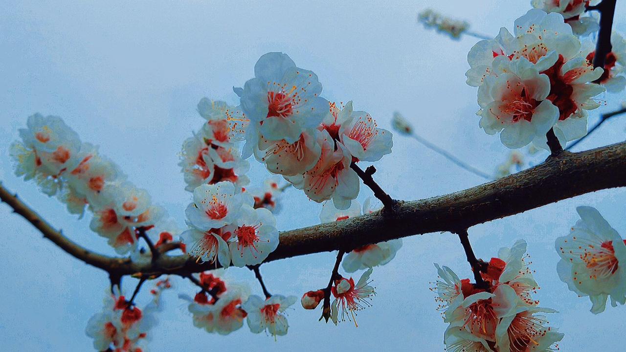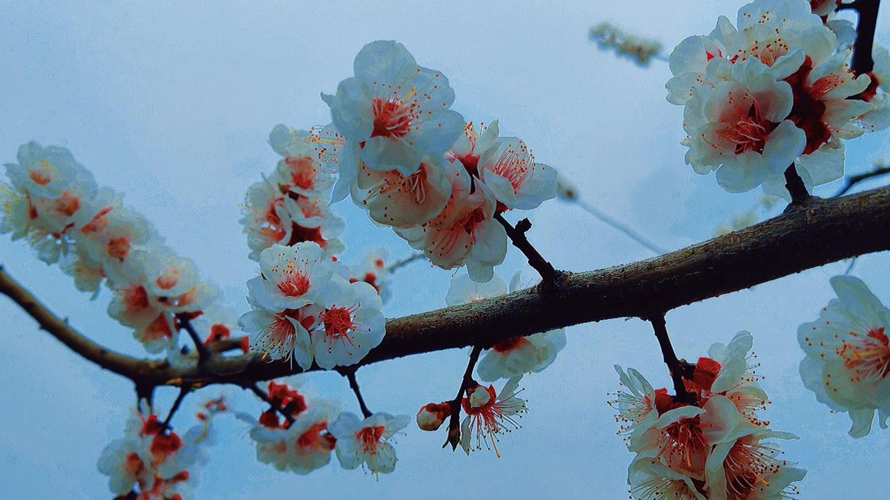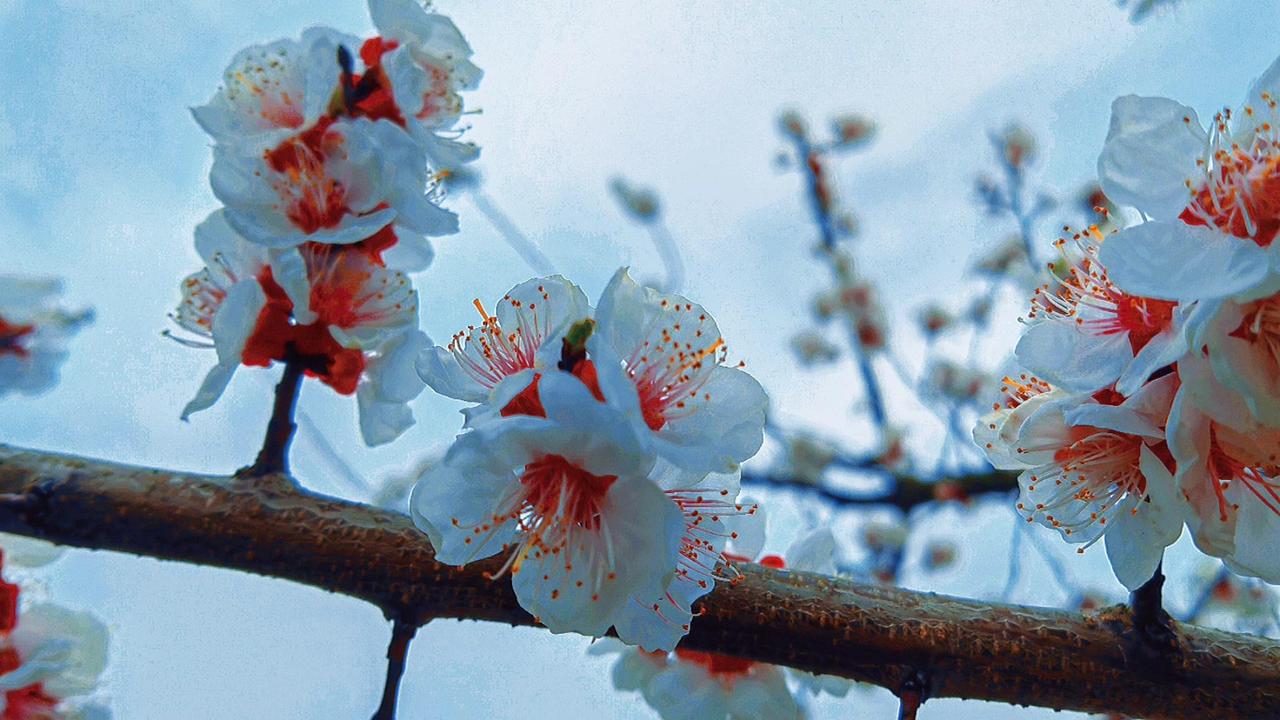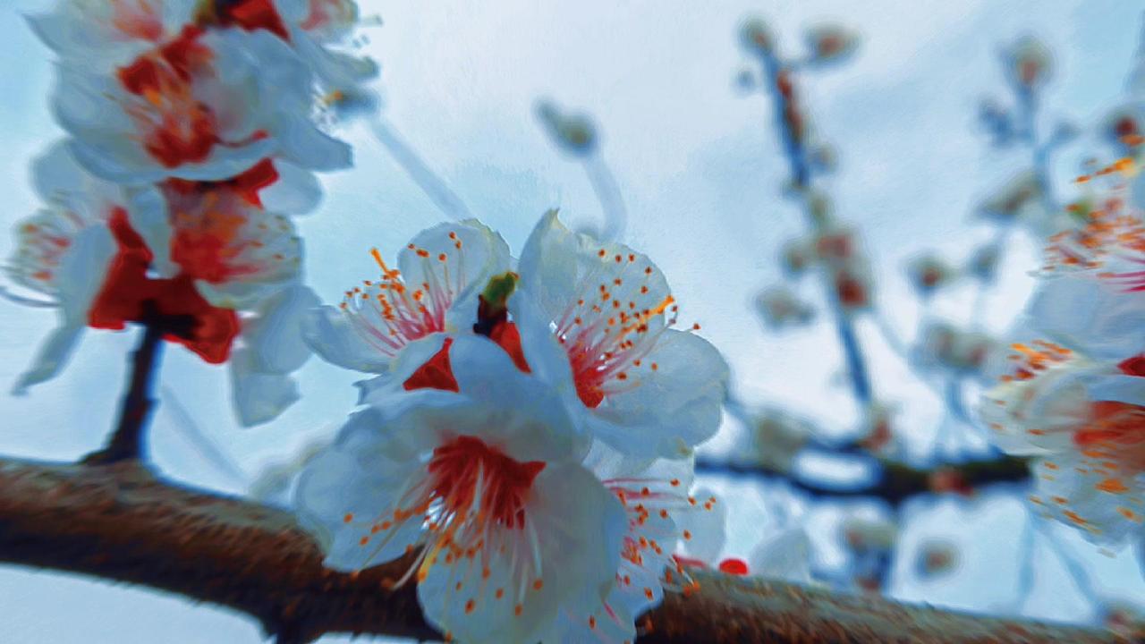 紫叶李开花时,每一瓣都薄得透光,连阳光都小心翼翼地穿过,仿佛怕惊扰了这半透明的梦。最动人的是那花蕊——一点鲜红,如朱砂,如心尖血,在素白里燃着。风来时,花瓣微微颤动,像极了欲言又止的心事。 这春日的私语,你听见了吗?