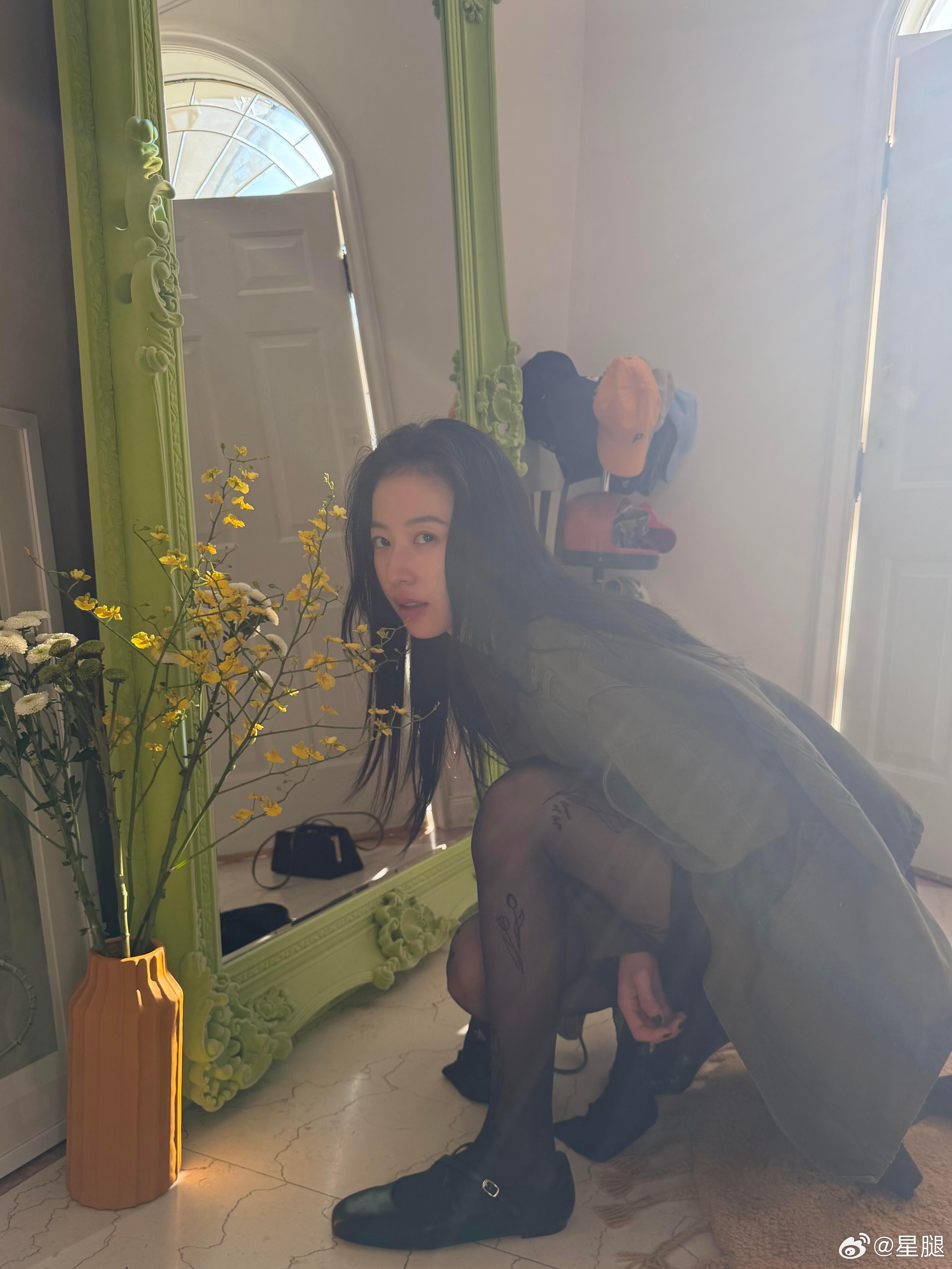 当复古旗袍撞上现代黑丝,是旧时光与新潮流的私密对话。她半倚在百叶窗边,黑色旗袍