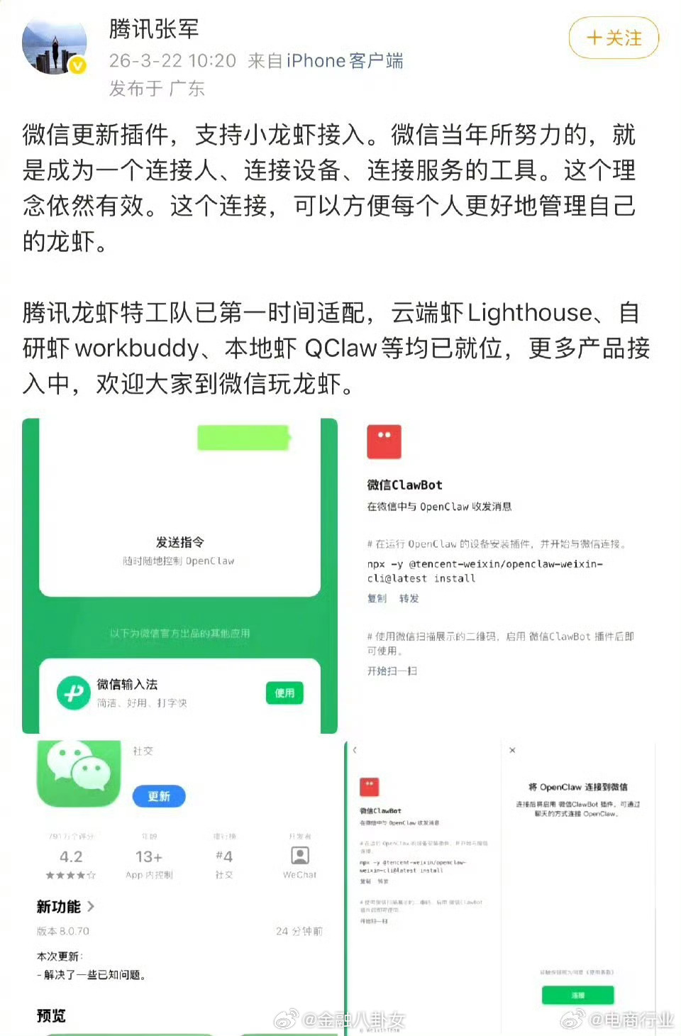 微信龙虾插件微信推出龙虾插件支持接入OpenClaw,腾讯张军回应:不会泄露隐私也不会被封号