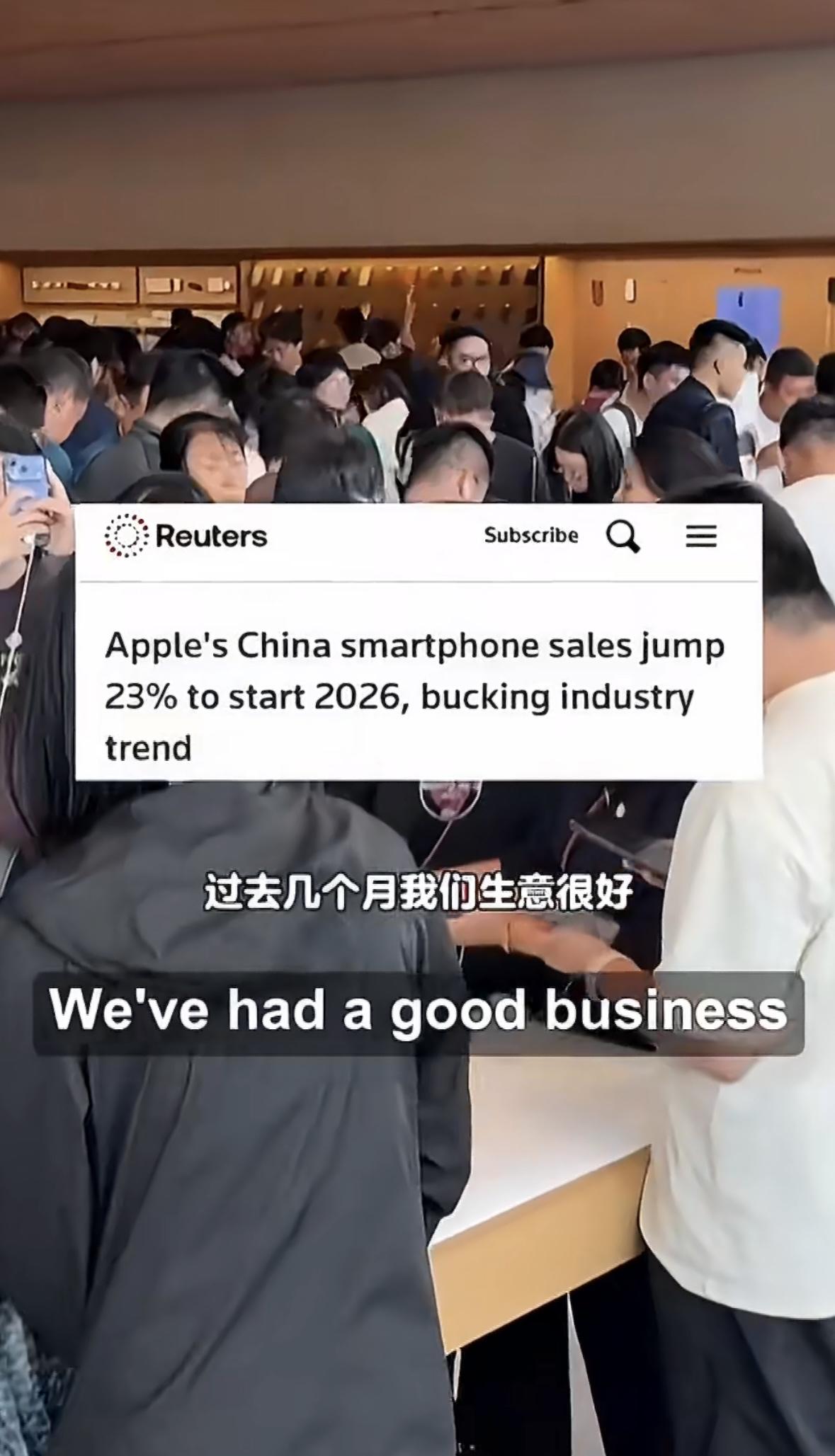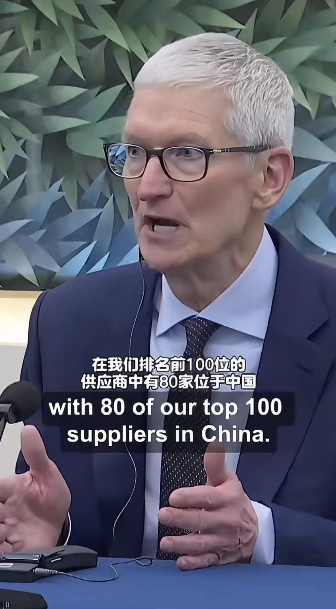 苹果CEO蒂姆·库克:苹果前100位供应商中80家位于中国;过去几个月生意很好。
