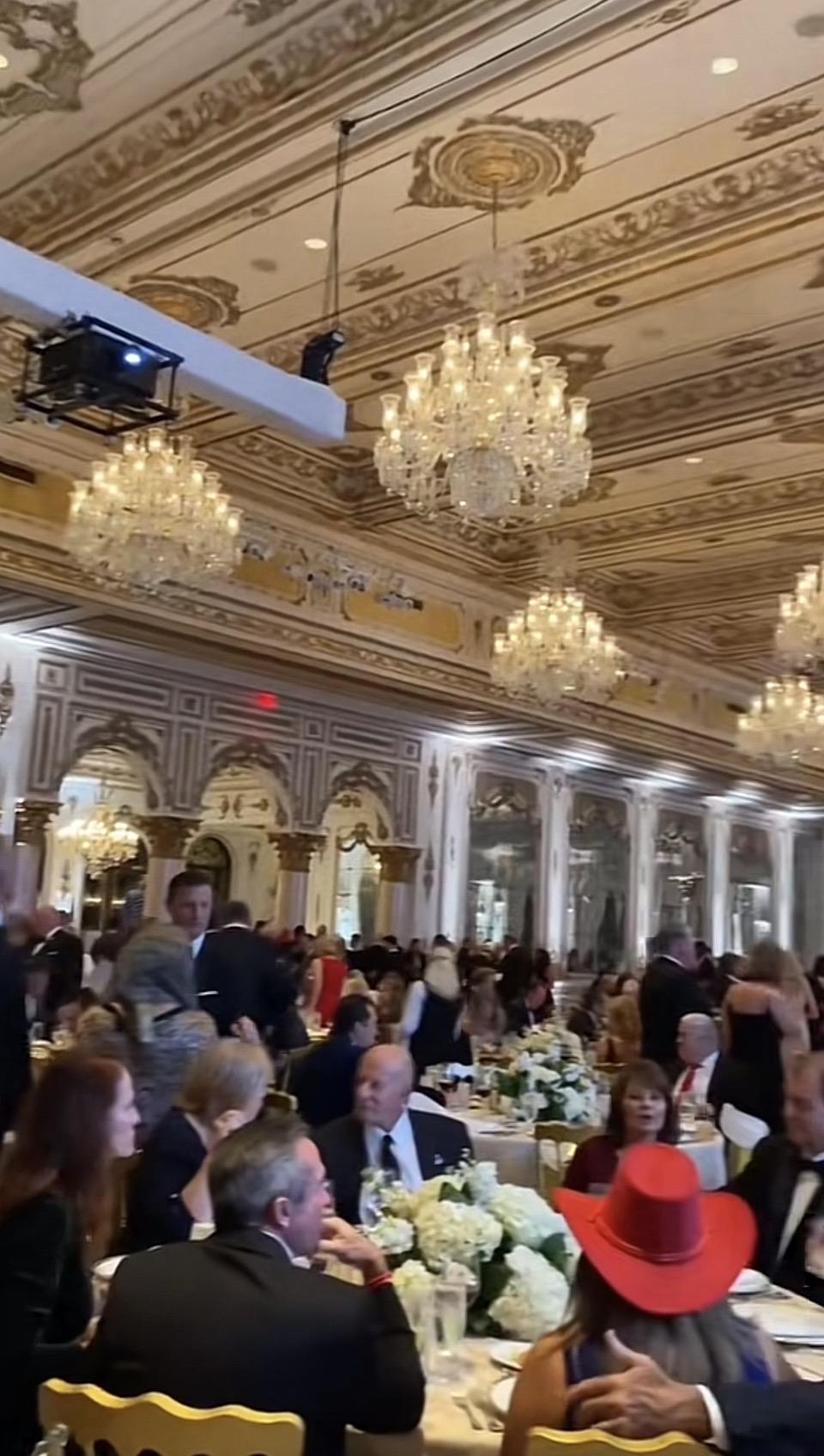 一场豪华晚宴,宾客们正在享用美食。