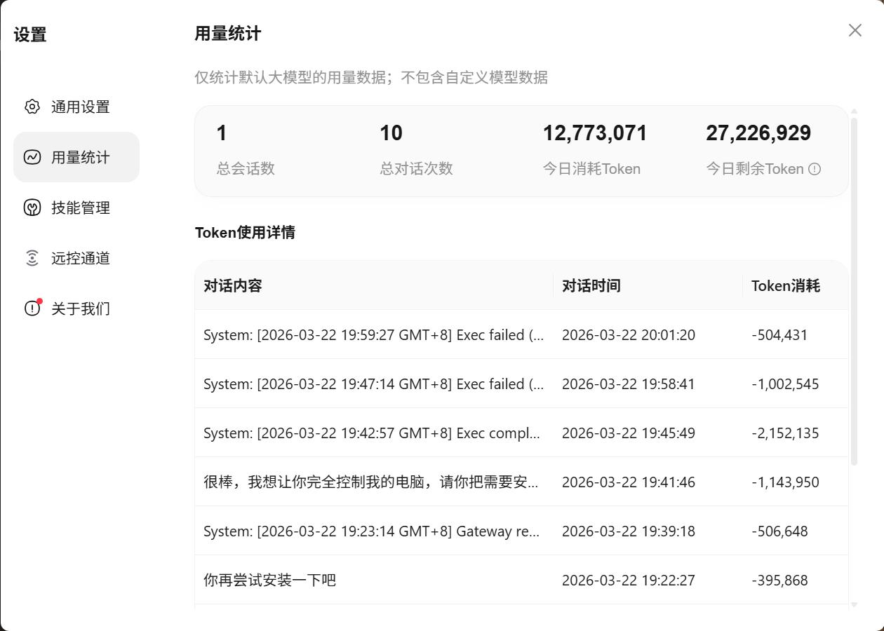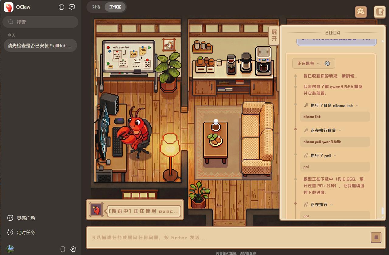 腾讯Q Claw挺好用的,而且每天有3000万的Token,足够良心了。 很喜欢腾讯腾讯Q Claw设计的这种漫画式的工作模式,有一种指挥员工的感觉,而且确定他底层就是用的open claw,因为我让他帮我安装一些技能,安装完成后他告诉我重启open claw即可使用技能。 要注意在设置中把工具权限限制的开关关闭,安装后腾讯为了保障文件安全默认是打开的。但是在打开的情况下小龙虾就没有权限去安装、管理本地文件,想让他好用还是要给他权限的。当然我是在自己的家用电脑里用的,工作电脑暂时还不敢打开。 在用量统计界面可以看到腾讯应该会每天送3000万的Token了,已经相当良心了,感觉轻度使用应该够用。但是担心不够,我还是给他下达了一个指令,让他连一下我在ollama本地部署的Qwen3:8b大模型,又让他帮我安装一下更好一些的qwen3.5:9b模型,如果Token不够用,本地大模型也可以应急一下。 尝鲜一段看看腾讯Q Claw能不能真正形成生产力吧。