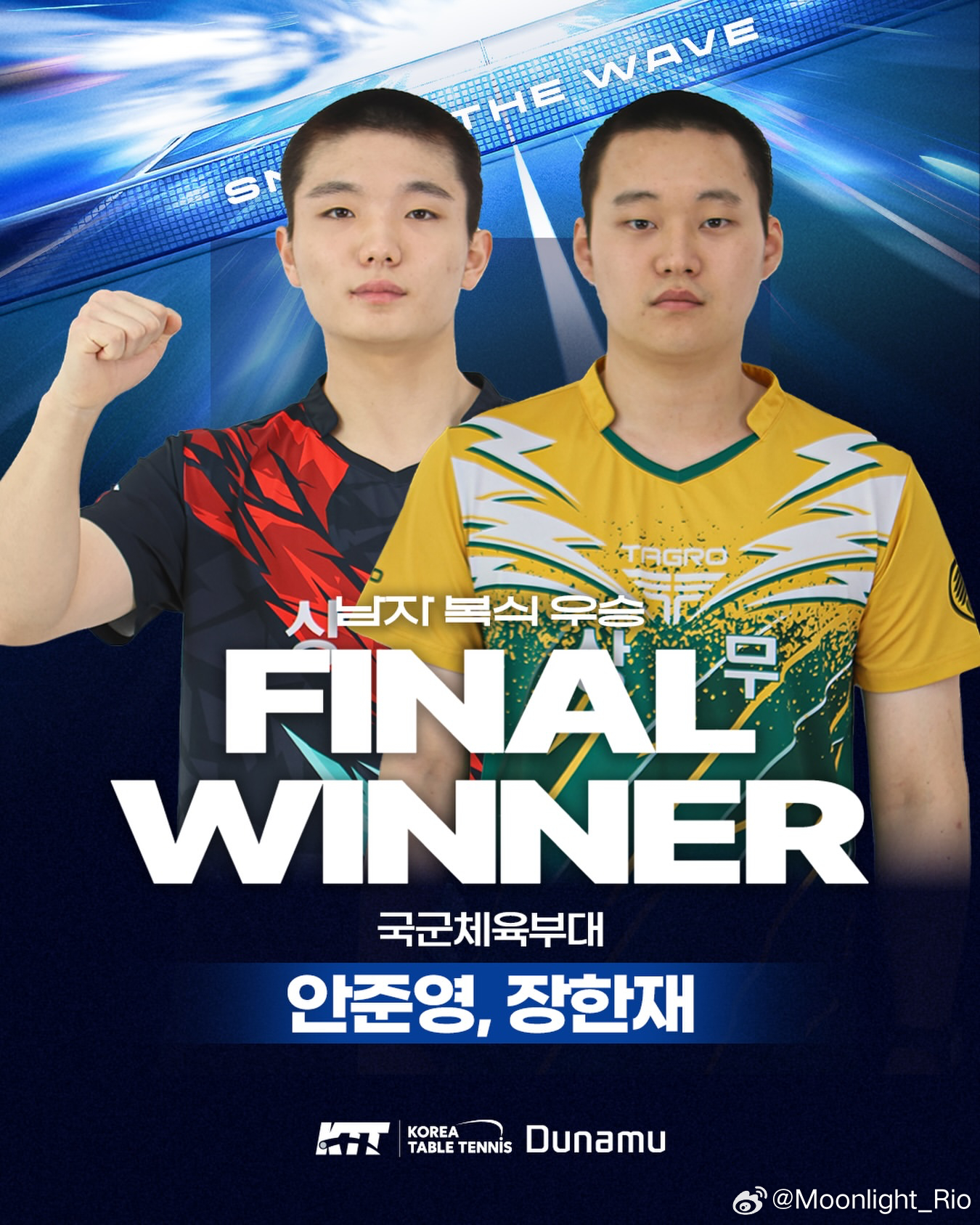 男子双打冠军:(国防体育部队)安俊英、张韩载