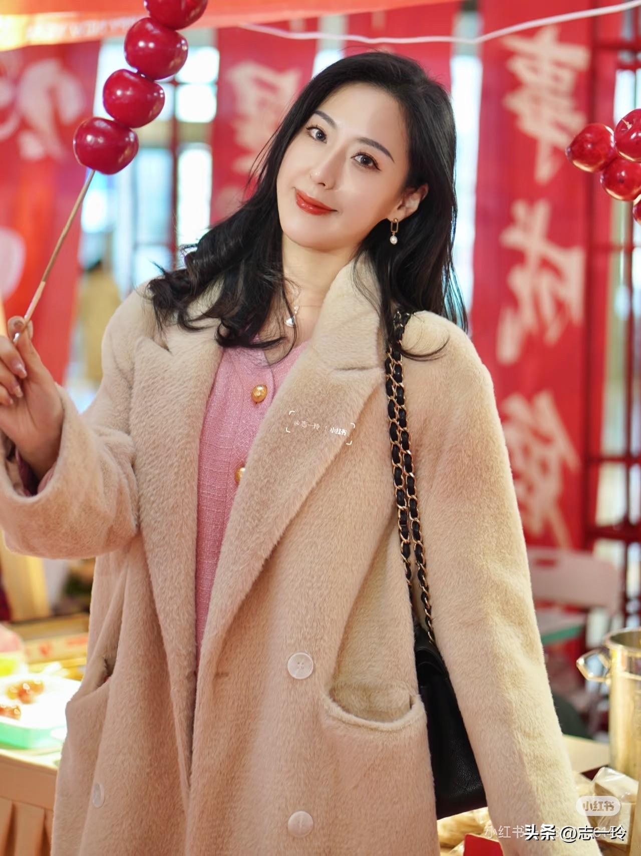 冬日暖阳下的甜美穿搭,温柔粉色与米色外套的完美搭配,笑靥如花,元气满满