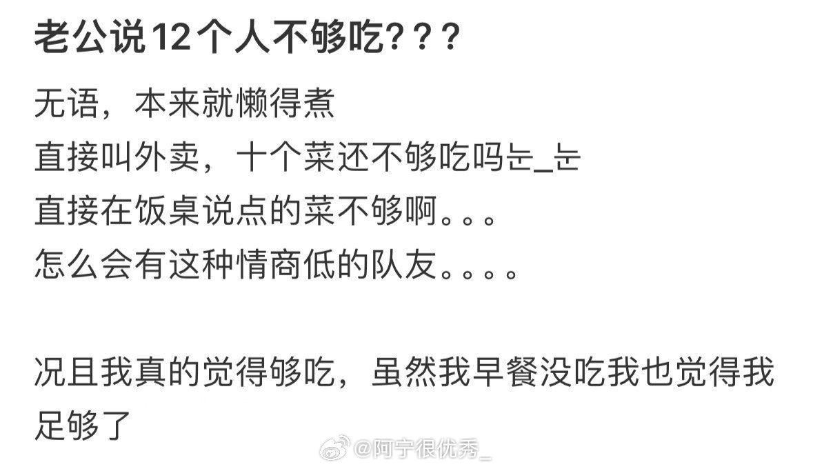 老公说12个人不够吃