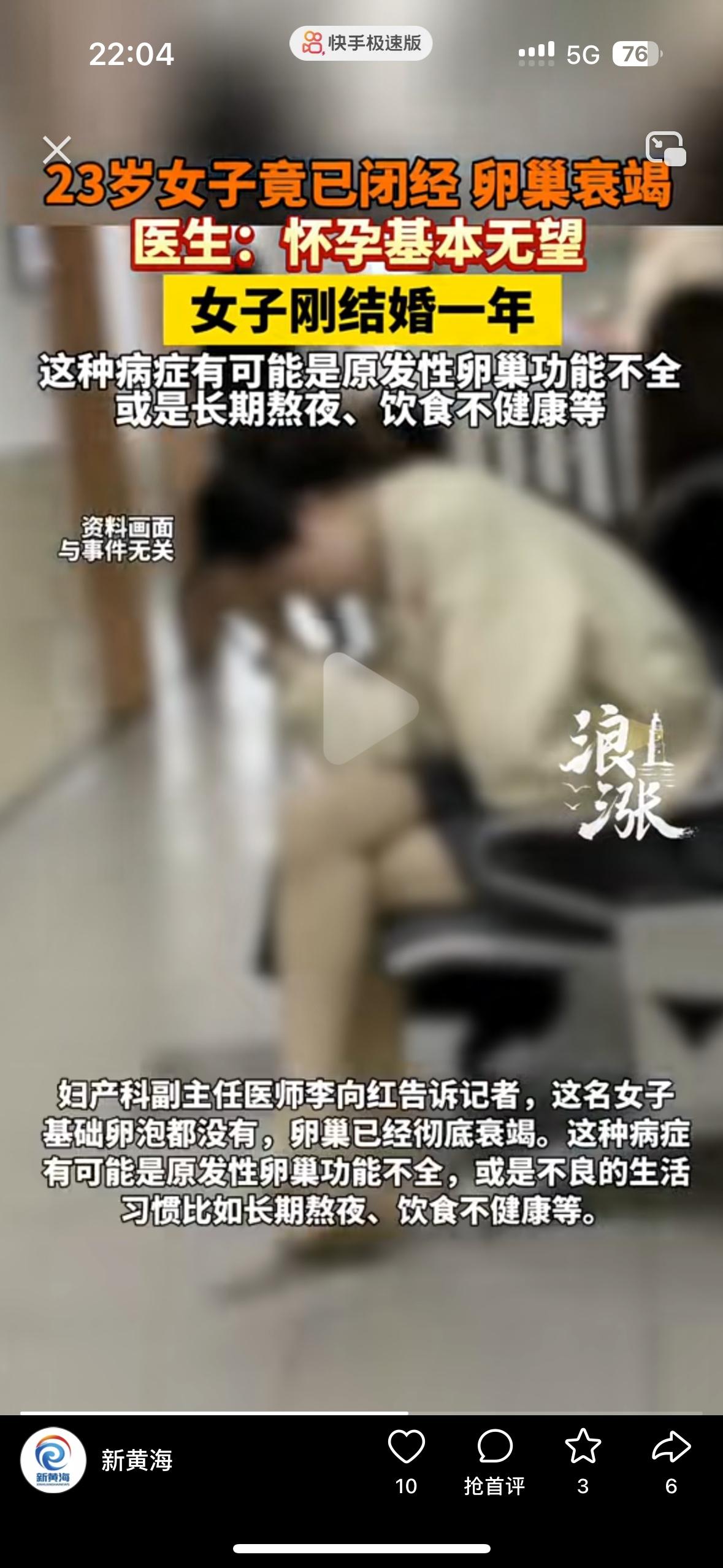 年纪轻轻的,不久就可能被婆家嫌弃到离婚了 大家敢信吗?现在居然还有被婆家退婚的!23岁的女生竟然闭经,卵巢衰竭了!不是她打过胎,也不是她玩的花,是因为长期熬夜,饮食不健康!四处求医都没办法医治,两个人结婚一年多被确诊卵巢衰竭,老公都觉得晴天霹雳,自己年纪轻轻的,娶了个不能生孩子的老婆,大家说他们会离婚吗?