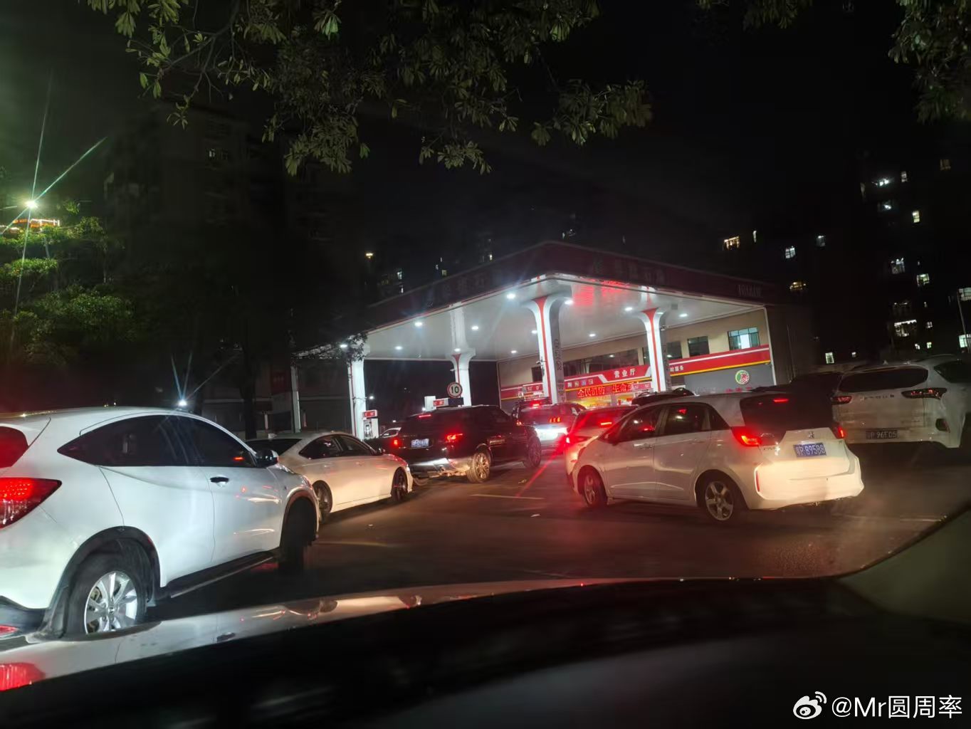 很多加油站开始排队了,好在我开电车…