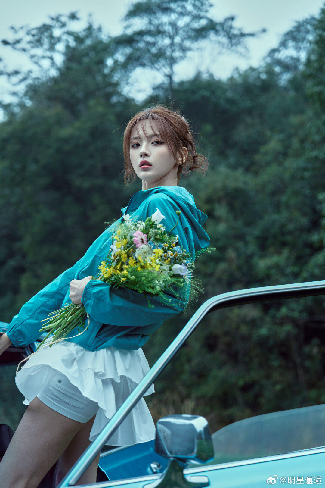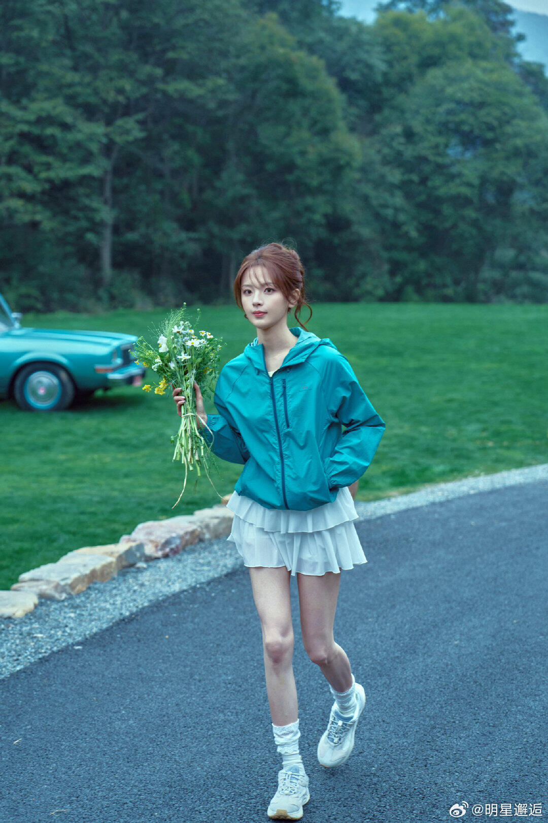原来杨超越裙裤里面的短裤还有口袋,好像漫画里走出来的少女。