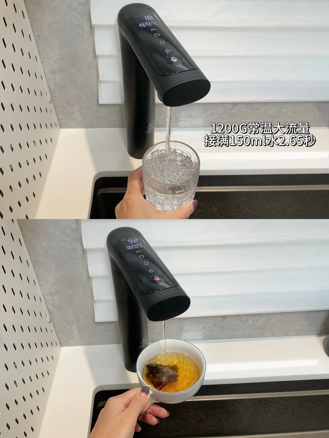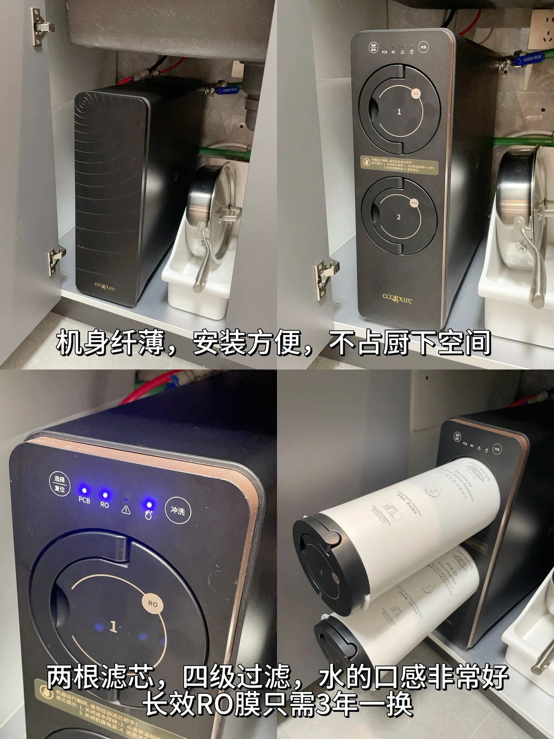 [向右R]这个净水器的两根滤芯经过四级过滤,不仅能滤掉水中有机物、重金属、微塑料、病毒等94种有害物质,还能吸附水中的余氯,水的口感特别好。滤材安全可靠,反渗透RO膜只需3年一换,滤芯拉开把手就能更换,非常省心。1200G的常温大流量也能满足全家直饮水需求,智能龙头上会实时显示温度和水量,有多档可调,热水一按就出来了,像日常洗菜、做饭、泡茶、泡奶等都直接选合适的温度就可以啦,各种生活用水场景都能满足。安装也方便,机身纤薄不占厨下空间。[赞R][赞R]