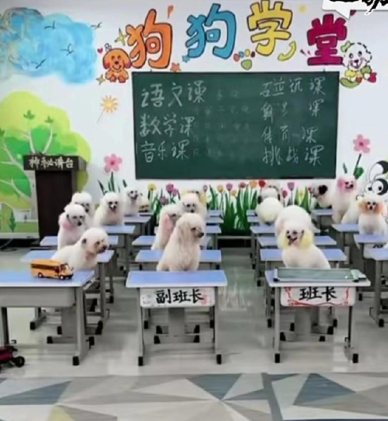 好可爱,这是狗狗幼儿园,它们听话,一个个坐的板板正正的。[大笑] 还以为是Ai生成的,原来是真的,在上海普陀区。 学费还挺贵的呢,不过看到它们人模人样的上课,做游戏,比人类还听话。 没有课堂故意搭话,气到老师手抖,呼吸急促;没有不听课说话的现象;没有啥都不懂还嘴硬的情况,羡慕啊!