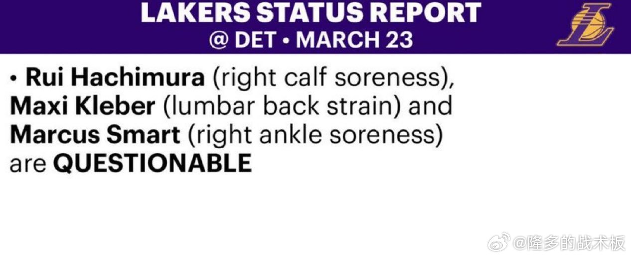 克勒贝尔也升级为出战成疑状态湖人vs活塞