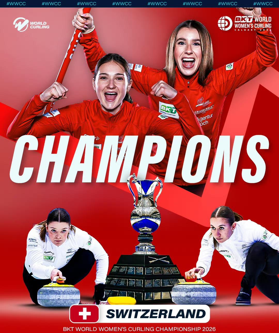 瑞士击败加拿大夺得冠军! 3月22日,在加拿大卡尔加里进行的女子冰壶世锦赛决赛结束,2026年女子冰壶世锦赛落幕。 瑞士队在决赛中7-5战胜东道主加拿大,夺得冠军。瑞典队在铜牌战中8-5击败日本。 各队最终排名如下(前8名): 冠军:瑞士 亚军:加拿大 季军:瑞典 第四:日本 第五:韩国 第六:土耳其 第七:中国 第八:意大利