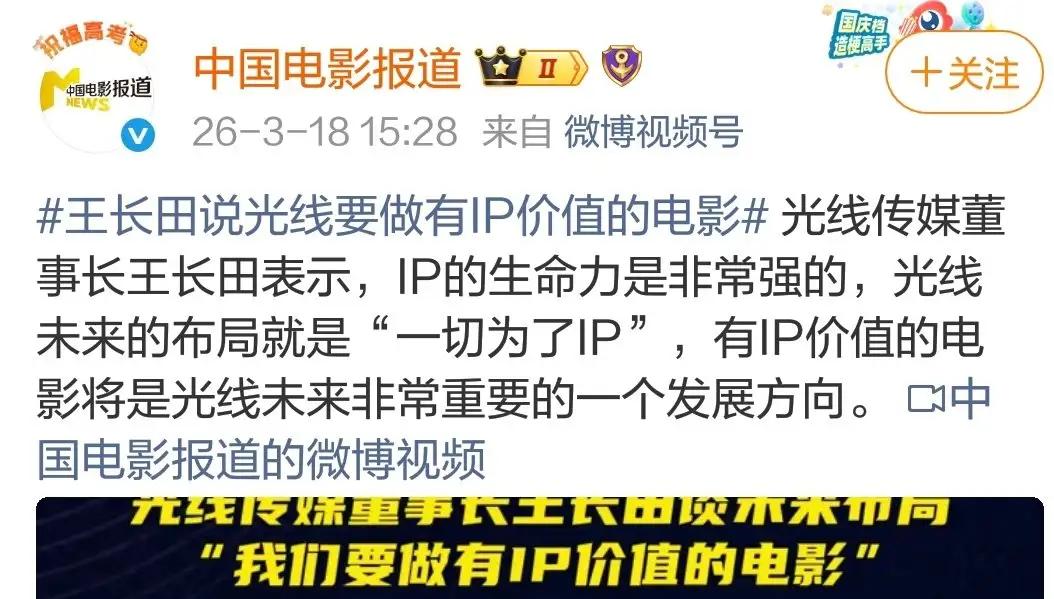 可以直接报王一博的大名了。光线董事长说:未来艺人要想发展长远,也要把自己当成一个IP来经营,你要有足够丰富的内涵,要有多样性。 光线传媒未来布局“一切为了IP”。公司定位转向IP的创造和运营,长期目标是创造顶级世界性IP。 赞同董事长对于有IP价值的电影和艺人的高见。这是有敏锐洞察力和前瞻性的传媒企业。《长空之王》时光线就开始研究分析王一博了。 目前王一博已拥有“王一博”、“85 Racing"、“探索新境”等成功IP,具有长远的发展性。
