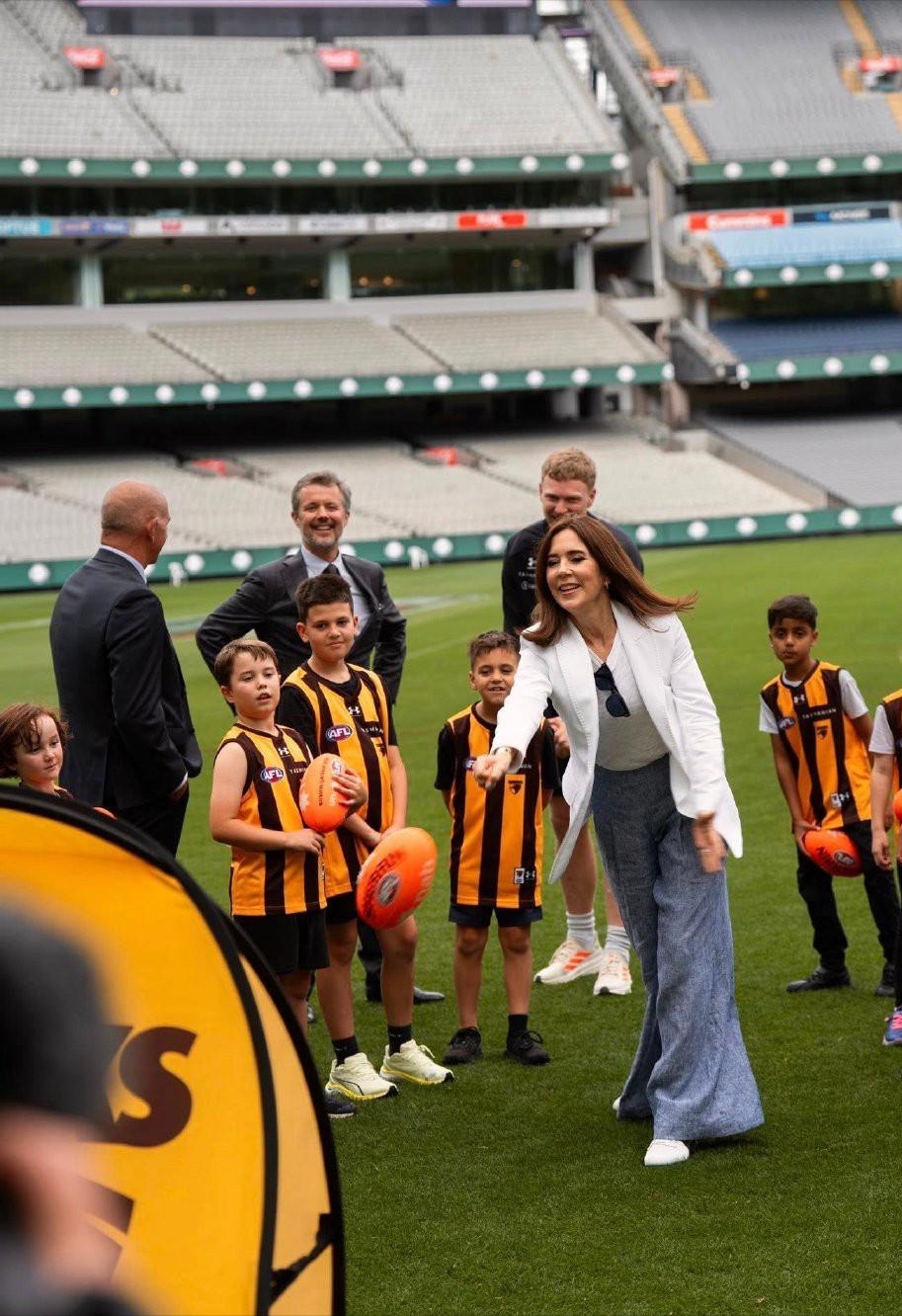 丹麦国王夫妇@澳洲Day4 下午他们抵达墨尔本,开启两日行, 活动以玛丽为主角,不仅获邀演讲, 她还到运动场上一展身姿, 最后是某伪王室夫人乱入图[机智]