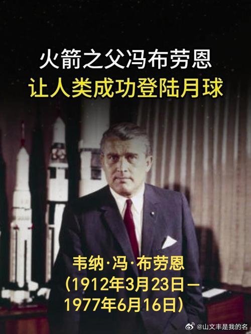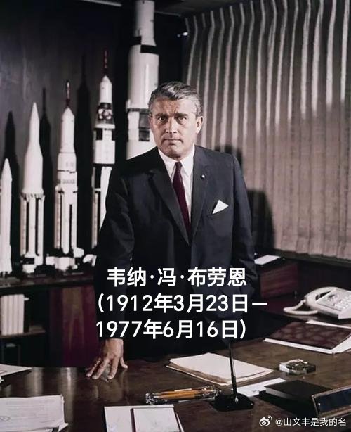 韦纳·冯·布劳恩(1912年3月23日-1977年6月16日),德裔美籍火箭专家,1934年获柏林大学物理学博士学位,二十世纪航天事业的先驱之一。曾是著名的V1和V2火箭的总设计师。纳粹德国战败后,美国将他和他的设计小组带到美国,任美国国家航空航天局的空间研究开发项目的主设计师,主持设计了阿波罗4号的运载火箭土星5号。NASA用以下的话来形容冯·布劳恩:“无庸置疑的,他是史上最伟大的火箭科学家。他最大成就是在担任NASA马歇尔空间飞行中心总指挥时,主持土星5号的研发,成功地在1969年7月首次达成人类登陆月球的壮举。”1977年6月16日逝世。