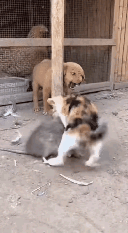 一只小花猫在院子里跟肥硕的大老鼠死磕到底,谁也没想到这场单挑会变成跨界团战。