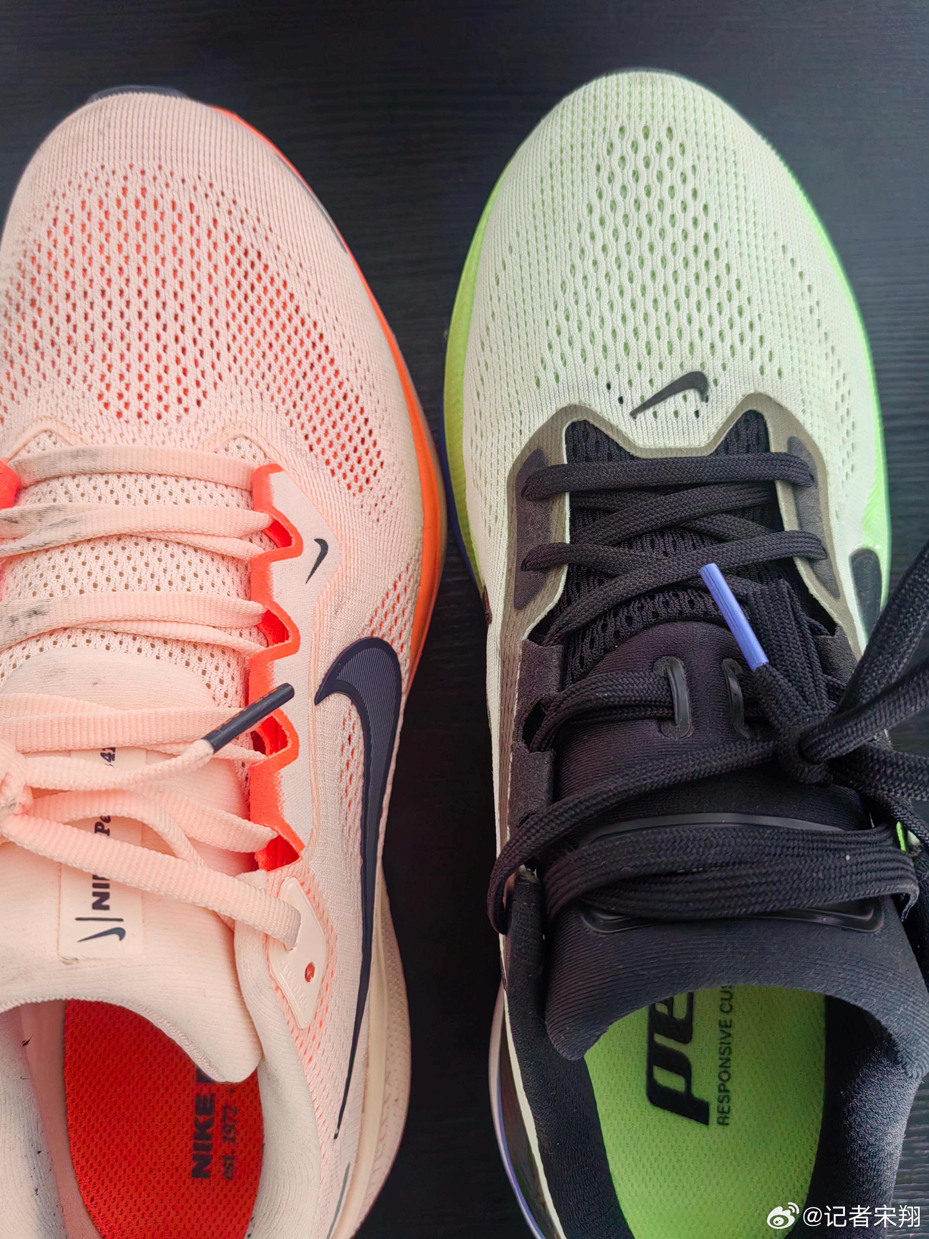 【飞马42 诚意之作】在耐克跑鞋矩阵中,飞马系列无疑是畅销最好的鞋款。今年,飞马系列已经来到了第42代。当中底:与飞马41相比,最大不同莫过于,Air Zoom气垫由此前的前后掌分离变为了曲线型全掌。再加上柔软的ReactX 泡棉。根据官方介绍,能量反馈较上代提升了15%。这次耐克在前掌部位特意增加了两个英文单词:“Full Length”(全掌)。这也是为了突出飞马42与上代的区别。我看到了某位博主将两代鞋子进行了拆解(见下图),能直观地看到两代鞋子在气垫的不同之处。我穿着飞马42,基本上单次跑步5公里+,还有一次穿它跑了山路相对友好的百望山。个人感受是,能明显感受到全掌气垫给予你的缓震与回弹,柔中带韧。直观感受明显好于上代。值得一提的是,飞马42在鞋头上翘弧度以及结构上也与上代有一定不同。简而言之,更为上翘的鞋头,让鞋子的滚动感更强一些。鞋面:编织网面设计略有不同,但我觉得飞马42要比上代透气性要好。春天穿着,特别合适。外底:通过对比图,可以明显看到两代鞋子外底的不同。飞马42的外底,第一做了明显的分区域设计,不同区域的橡胶纹路也有所不同。飞马41的外底橡胶给的更足,类似华夫格设计。鞋带:飞马42的鞋带设计要好于上代。飞马41的一个问题是,它的鞋带有点短,且容易开,这是一个痛点。但飞马42完全没有这方面问题。它有着很好的锁定感。这点尤其值得称赞。鞋带长度也合适。鞋重:在同样US 8的尺码下,两双鞋子的重量相差不大,具体看下图,但考虑到飞马42换上了全掌气垫,这样的重量控制也是很不错。两代鞋子都是很轻质的。小细节:虽然飞马42并无飞马系列的特有标志“飞翔翅膀”,但后跟,简洁的飞马42字样,给人以精致感觉。小结:这双飞马42,诚意十足。值得推荐。翔聊好物