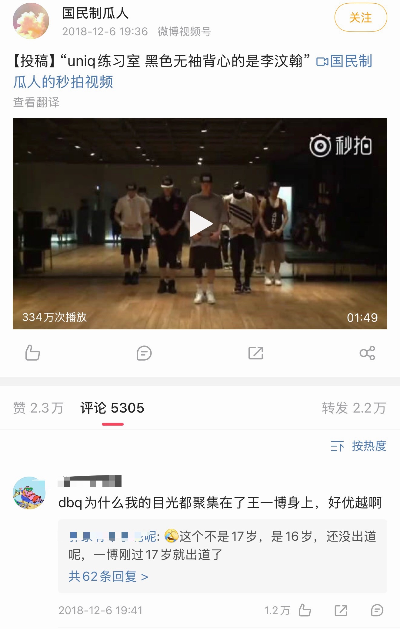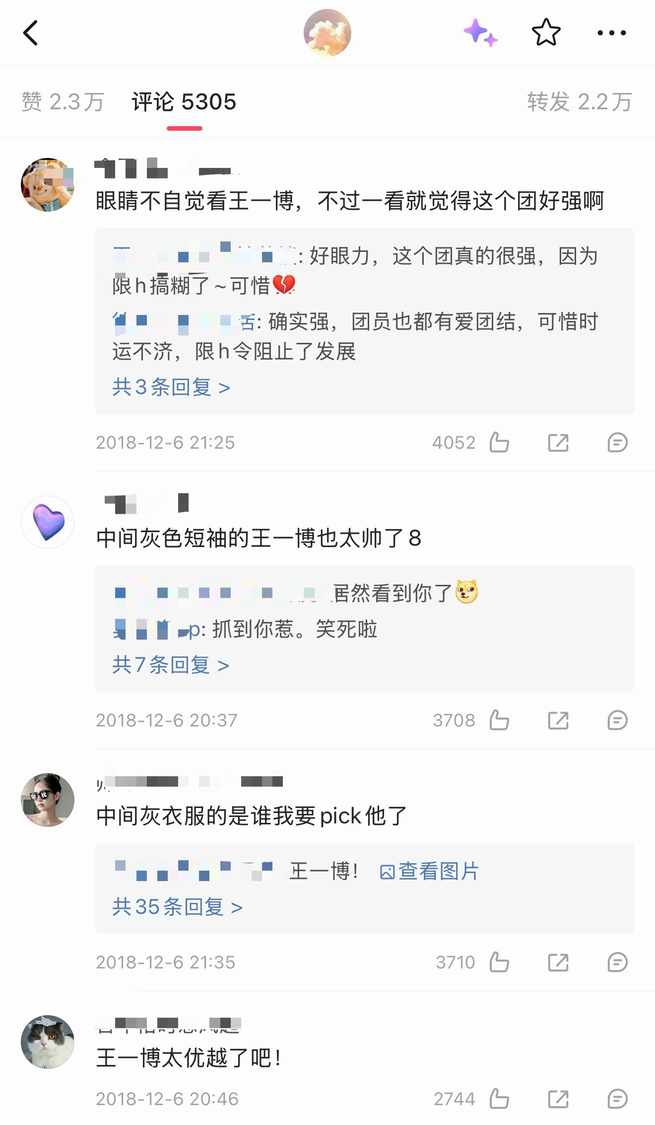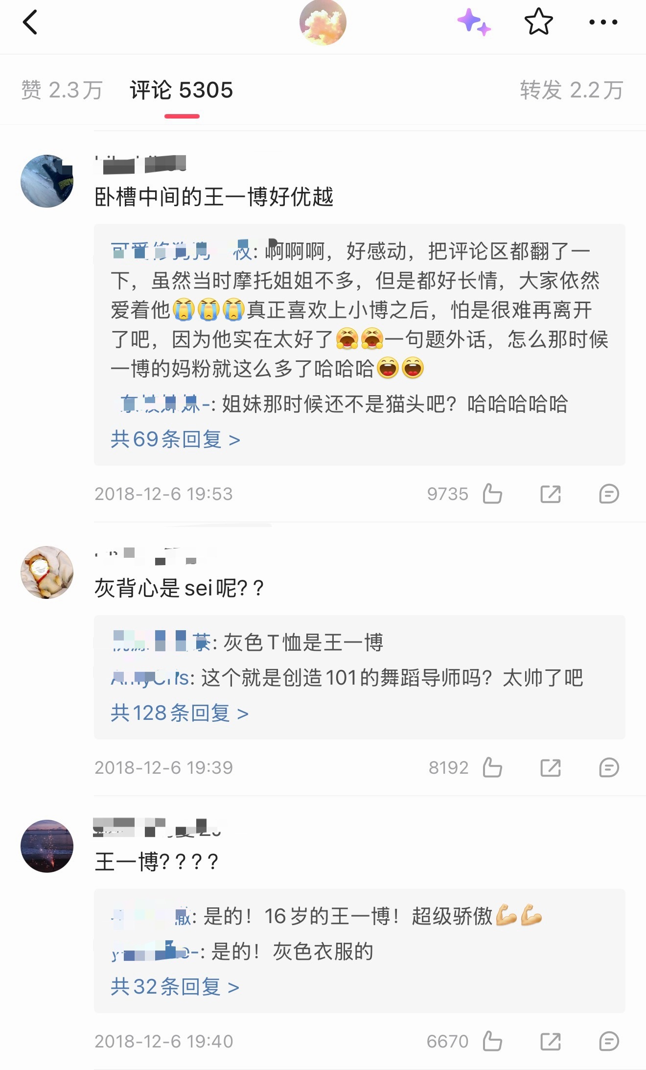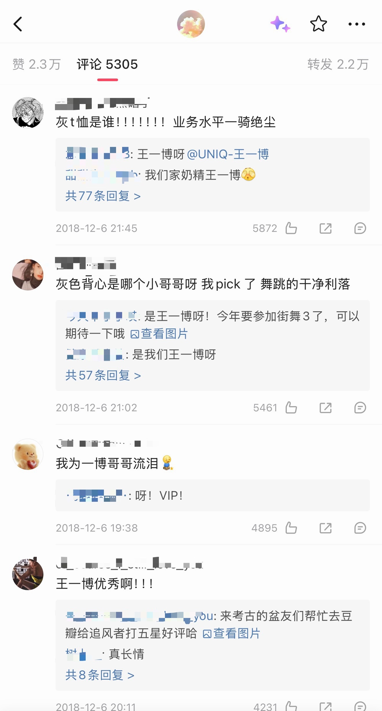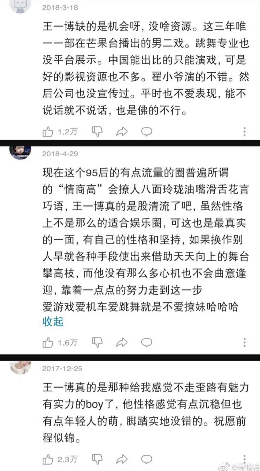 原来王一博17、18年也被看好过待爆生…18年就有过万转万赞大出圈视频,评论区是真的全是路人(因为是队友安利视频……),那时候微博sj也还没现在这么💦。且19年是真的爆了是金子怎么都会发光的,要红的人都是命中带红的