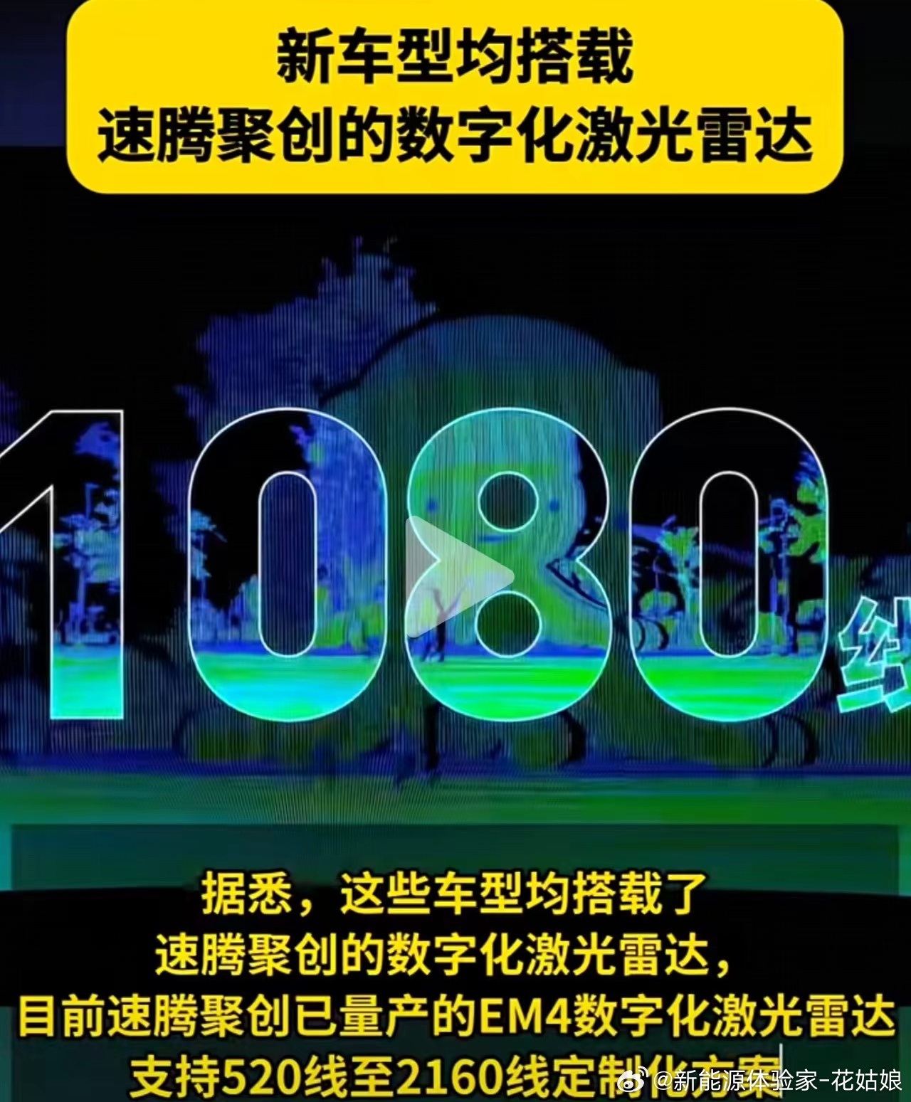 “1080线”是EM4雷达可支持的定制化线束规格之一,并非所有车型都用最高规格,会根据价位和场景做差异化配置。