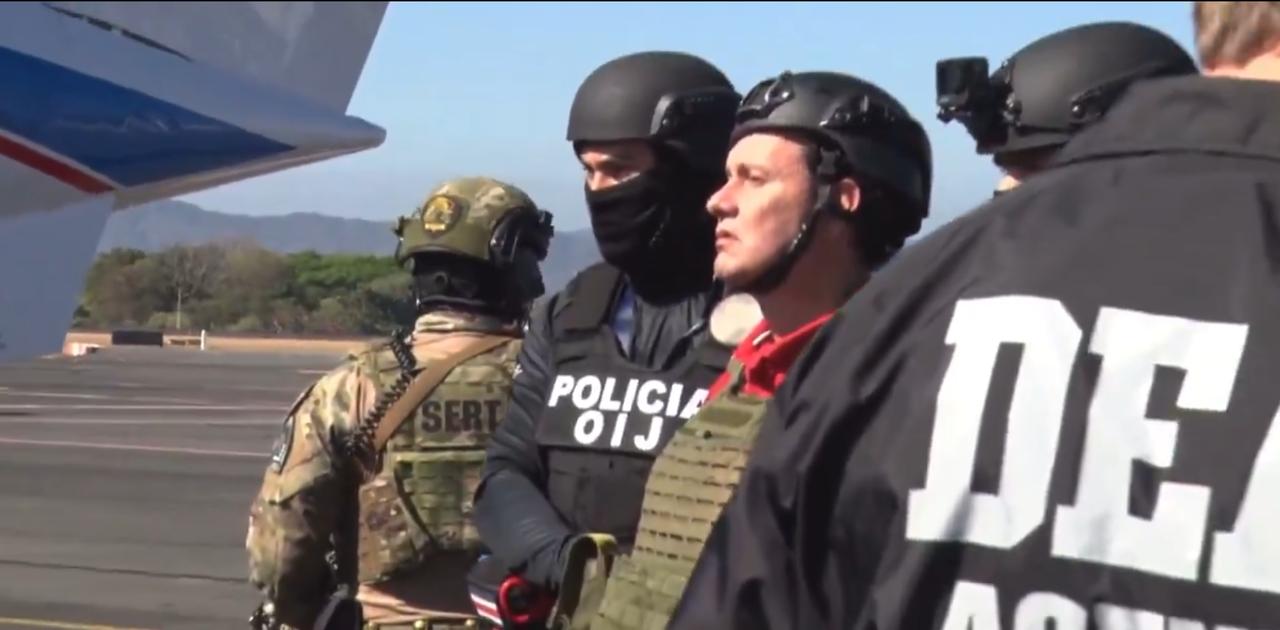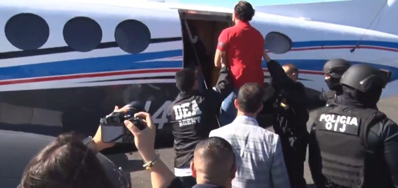 前哥斯达黎加安全部长塞尔索·甘博亚(身穿红色衣服)和毒枭佩乔·德·拉塔(紧随其后)在一起。这是哥斯达黎加历史上首次引渡。两人被引渡到美国德克萨斯州达拉斯市,这是哥斯达黎加历史上首次引渡。此次引渡得益于一项制度改革,该改革允许将涉嫌贩毒和有组织犯罪的哥斯达黎加公民引渡回国。塞尔索被控牵线搭桥,将哥伦比亚的“海湾帮”(Clã del Golfo/EGC)与锡那罗亚贩毒集团的毒贩联系起来。他曾是一名法官,并与佩乔·德·拉塔合作,利用一支足球队作为掩护,从事贩毒和洗钱活动。