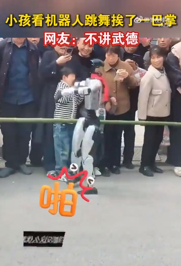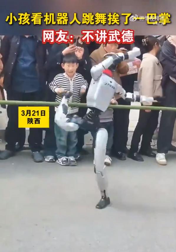 机器人不讲武德!小孩看跳舞挨了一巴掌 要被这段视频真的笑喷了!陕西一商场附近一群人围着看机器人跳舞,结果机器人动作幅度太大,手臂直接抡起来,结结实实给前排凑太近的小朋友来了记回旋巴掌。 小朋友当场就懵了,估计心里全是问号:我就凑个热闹,招谁惹谁了?机器人真一点武德都不讲,这记铁巴掌看着都疼,估计脸都肿了,也算是真切感受到了科技的力量。 只能说,看机器人、机械臂这类表演真要空出一定安全距离,不能凑太近,再新奇的机器,动起手来也是毫不留情啊!