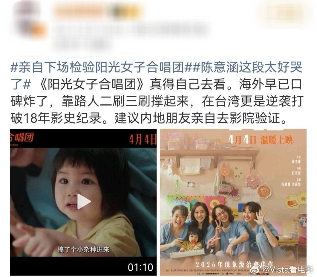 这样一部靠真实口碑封神的影片,4月4日清明档正式上映院线,期待更多人能走进影院,亲自品品这部口碑佳作~终于到我们看阳光女子合唱团了