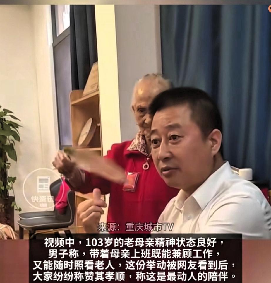 这才是刻在骨子里的孝顺! 河南鹤壁大哥带着103岁老妈上班的日常,看完心里暖得发烫。 谁都知道上有老下有小的难处,辞工尽孝没收入,请人照顾又不放心。 大哥干脆每天扶着老妈坐副驾,系好安全带稳稳开去单位,工作时把老人安置在身边,随时能照看、能说话。 单位也超给力,专门给老母亲留了位置,这份双向的善意太戳人。 都说孝顺分很多种,可比起物质回报,这种“不缺席”的陪伴才最珍贵——母亲在身边,工作再忙也心安,这是多少人求而不得的幸福。 新时代的孝顺从不是惊天动地的壮举,而是把“父母在,不远游”变成了“父母在,带我走”。 你平时是怎么陪伴家里老人的?