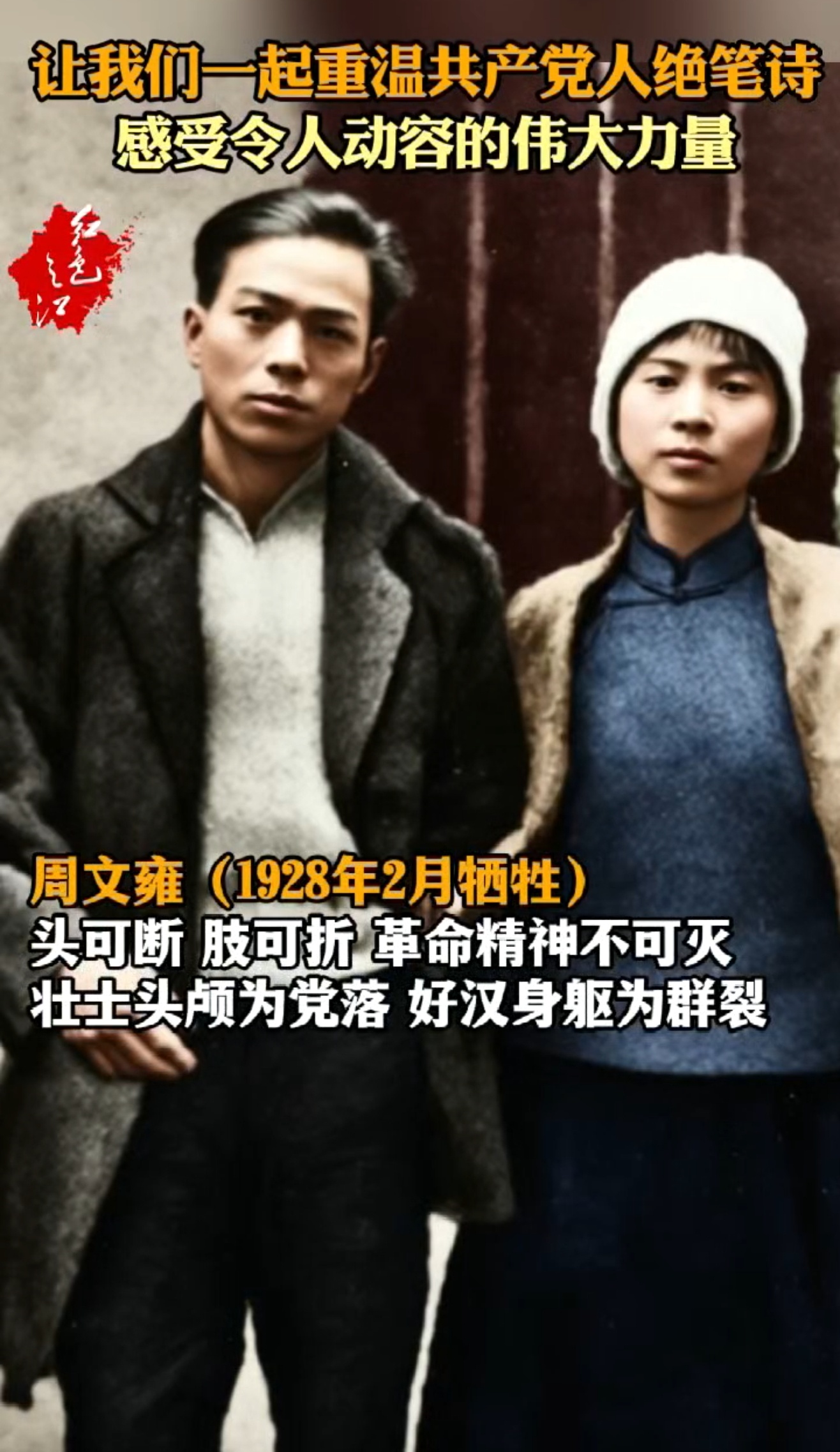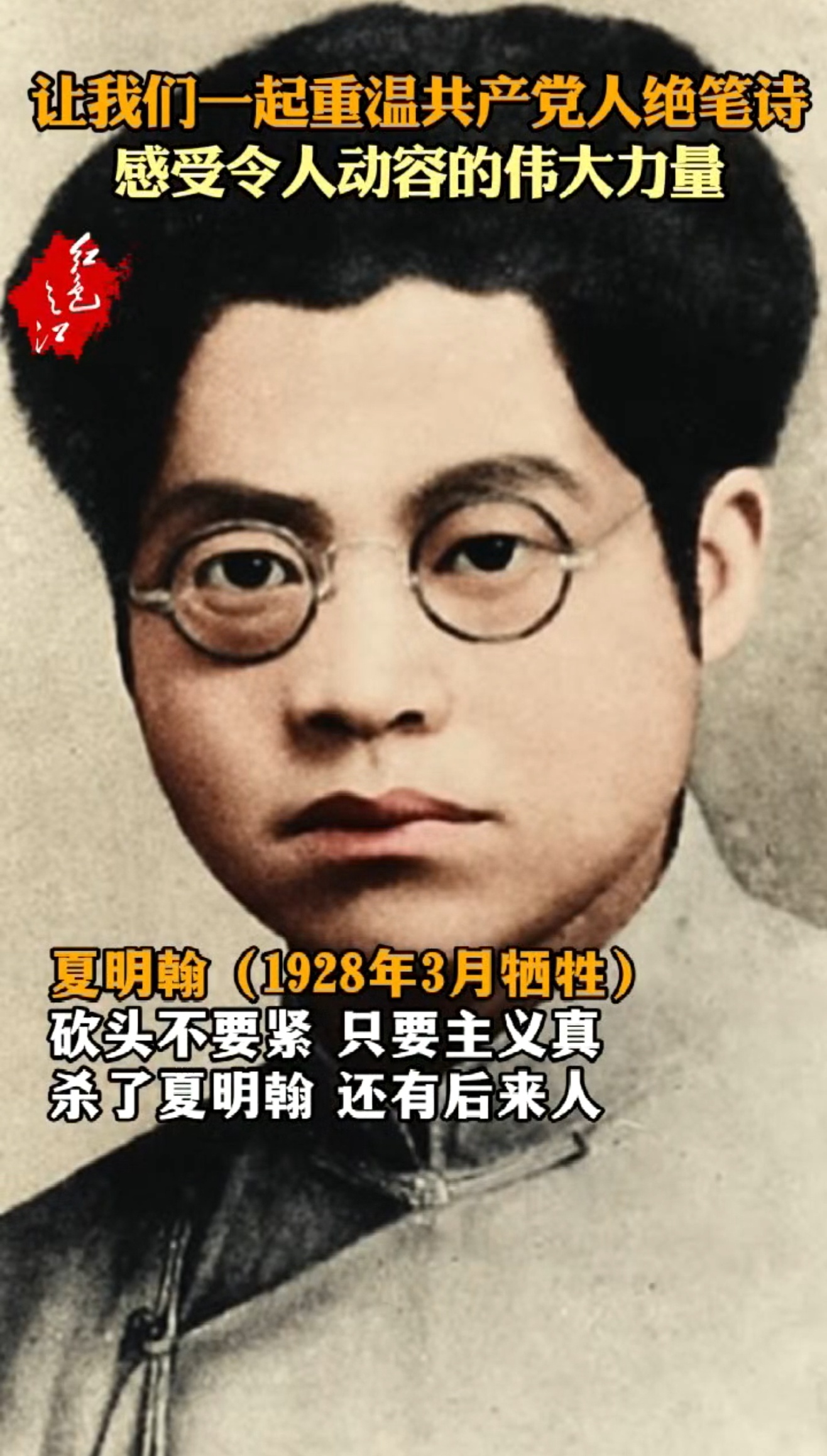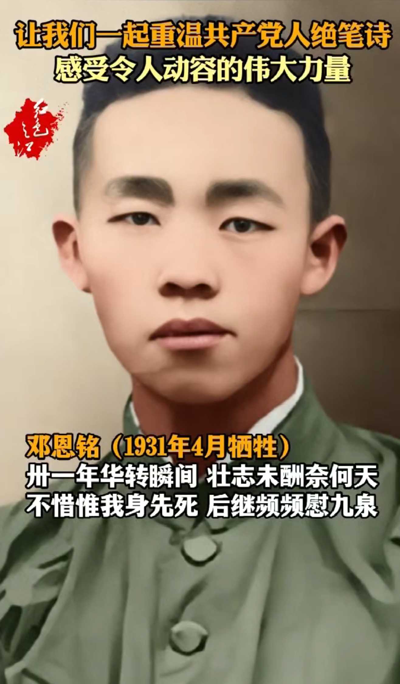 他们是中国共产党先进性的崇高人证;是历史浪潮的澎湃先声;是华族魂脉的血骨担当;是文明永续的精神丰碑!一起重温共产党人绝笔诗,感受令人动容的伟大力量。