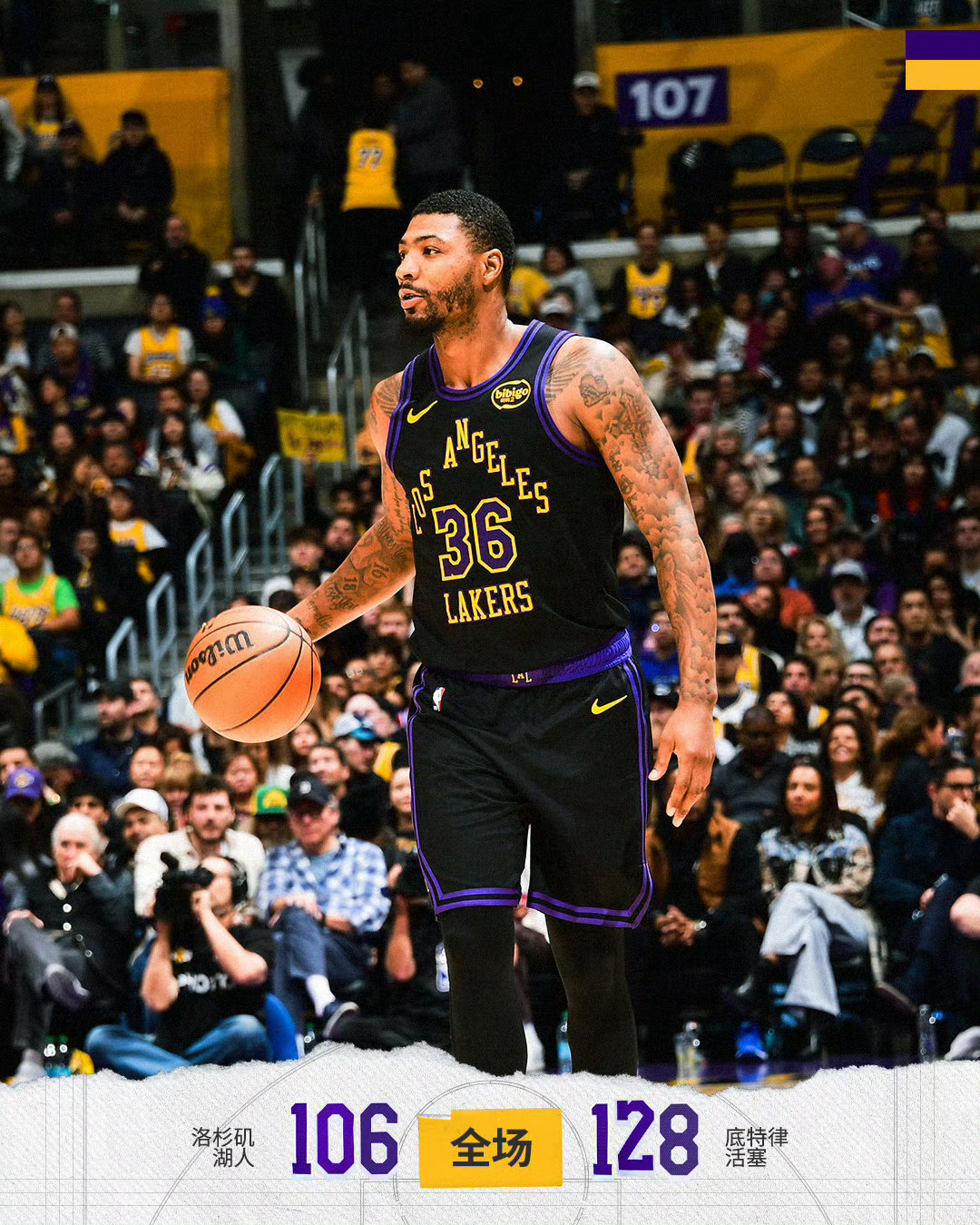 【近5场表现】湖人-胜胜胜胜胜活塞-胜负胜胜胜12月31日,湖人106-128活塞