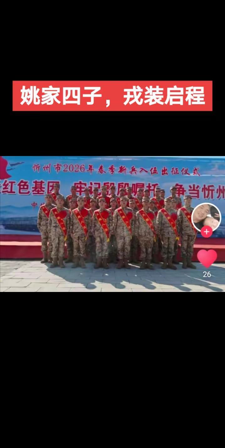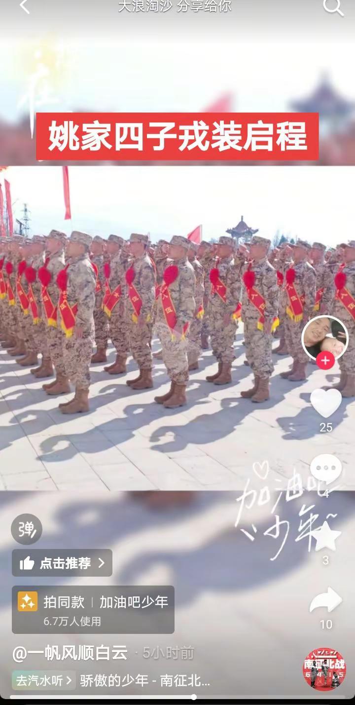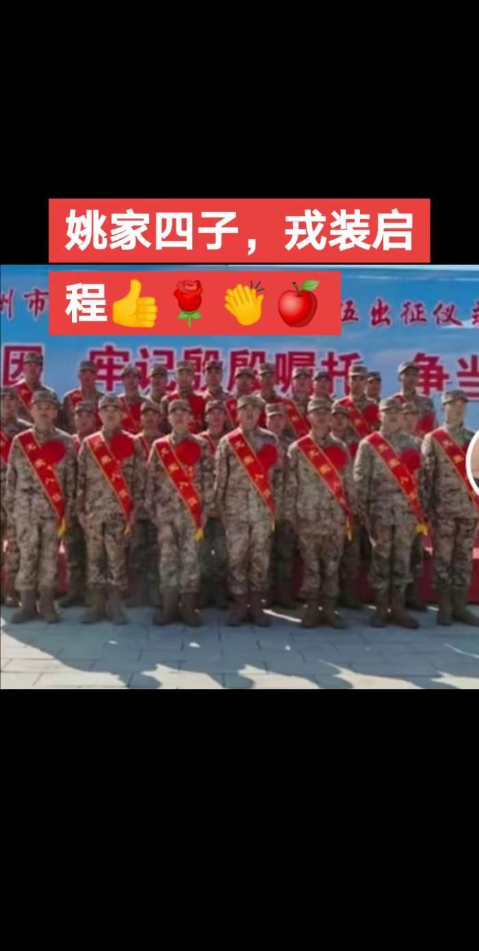 光荣入伍姚家好儿男@姚家第二代军人,父辈转业守家,儿辈入伍为国!为弟弟和儿子点赞
