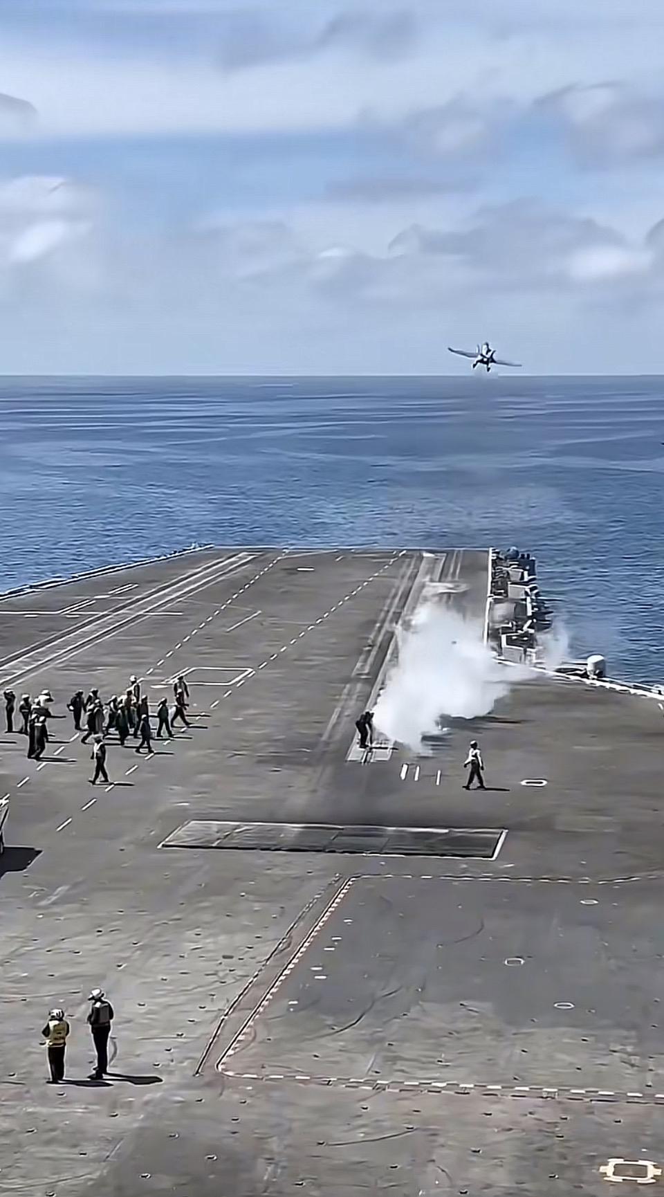 航母上的壮观景象,飞机即将降落,紧张又激动人心!🛫️🌊
