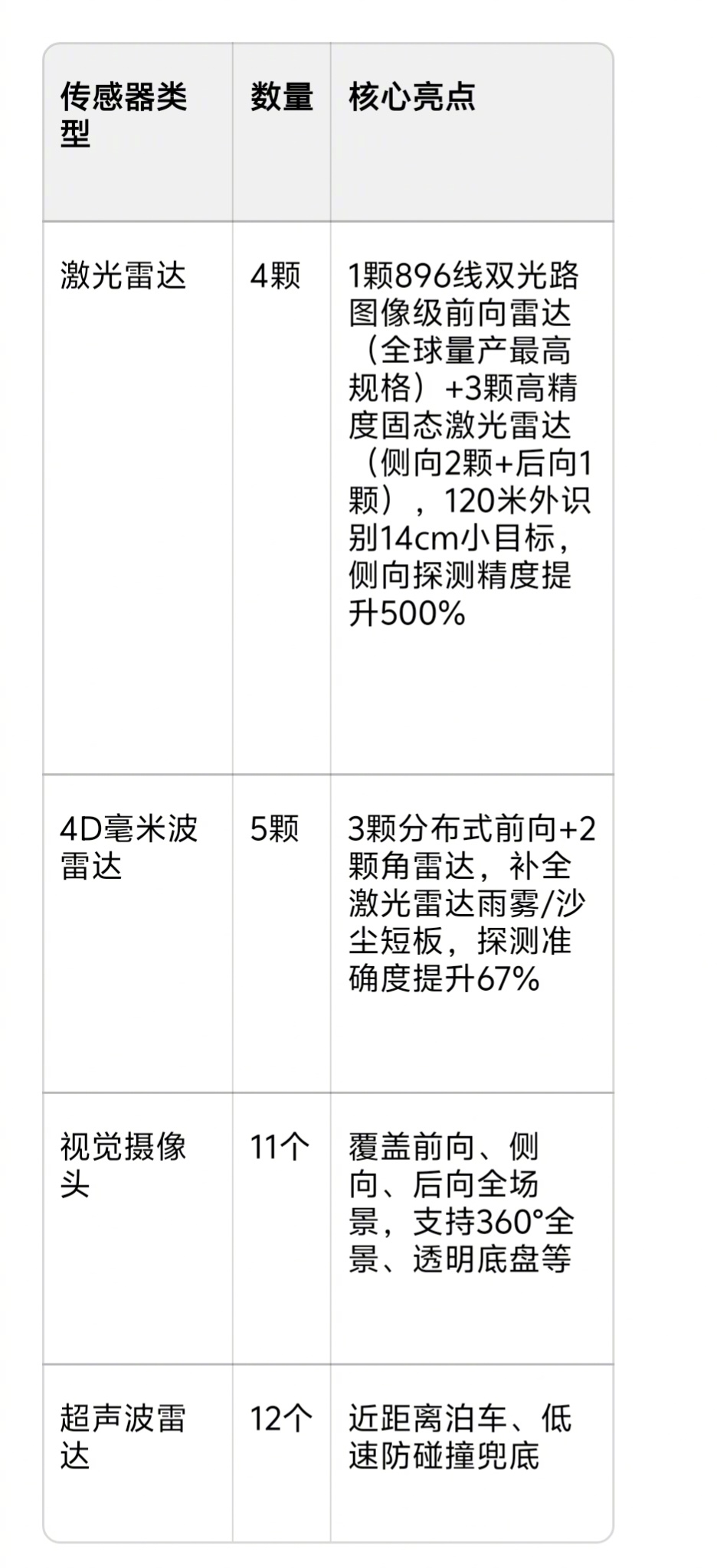 对车主而言,意味着360°无死角覆盖,全天候冗余,30万级就拿到了百万级的感知硬件。