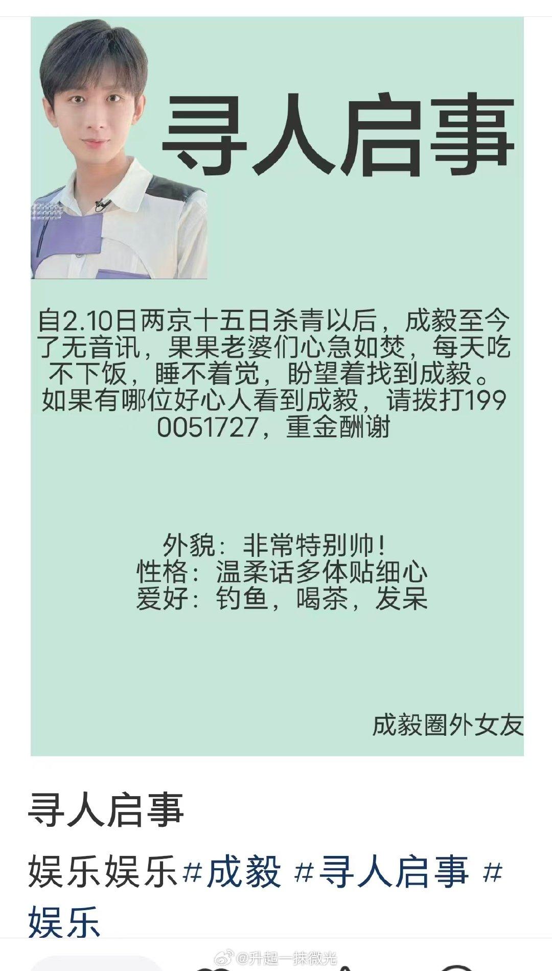 真的笑亖!每年都印证了老粉的话:“别的明星怕粉丝跑了,成毅粉丝是怕成毅跑了!”距离成毅《两京15日》杀青才半个月左右,第5代果果就耐不住寂寞了,这“无淇徒刑”才刚开始就开启寻人启事了! 老粉都知道这才到哪儿到哪儿,有时长达几个月看不到真人和他有关的任何消息都是很正常的事,老粉们都知道喜欢成毅就要耐得住寂寞! 很多新果果看不到淇淇,患上了“毅郁症”。好笑的是竟有好心人玩起了创意,还开了“爱毅处方签”,病因:缺乏维生素ee😅,表征:寂寞空虚,精打采,日思夜想,坐立难安。虽然还配有药方,但见不到成毅的“刑期”是有点难熬,建议去考古他的剧和物料可以有效缓解“毅郁症”![笑哭]