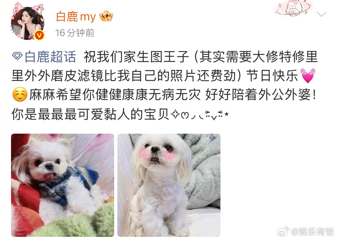 白鹿给黏黏写的应援文案白鹿家有两个生图王者 生图王子黏黏报到白鹿给修狗写的应援文