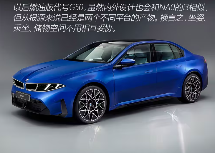 媒体没说的全新宝马i3技术细节 1 新一代i3代号NA0(此处读零),代表新的开始,基于Neue Klasse平台,而之后大改的燃油版3系代号G50,是基于现款优化后的CLAR平台。也就是说以后俩车并不是油改电,或者电改油的关系了。不过二者设计元素以及零部件会存在一定通用情况。 2 发布会和媒体拍到的都是带M Sport套件的版本,之后也会有运动属性没这么强的。换句话说,现在这么帅有很大一部分原因是戴着套件的“光环”。 3 和现款,也就是“国内特供”基于G20燃油3系而来的i3L一样,新一代NA0 i3咱们国产后会进行加长变成i3L,也是在B柱以后动手脚,以此增加乘坐空间。 4 L113短了不少,喜欢“长鼻子”宝马造型的朋友要失望了。“屁股”挺高,某些角度看有点像是被大家吐槽烂了的的这代5系,所以媒体们普遍不怎么展示后面这个角度,看到实车要做好心理准备。 5 好消息:展示的版本是四驱也带前备箱 坏消息:空间不大,放上充电线就所剩无几了。 6 门把手还是隐藏的,但咱们法规马上要实施了,也就是说国产版本这块必改。 7 后备厢开口受到两侧翼子板影响明显,宽度十分有限。但后排可以放倒、放平。因为是纯电平台,所以后排地板是纯平,没隆起。 8 方向盘上看着是按键,但实际是触控反馈的,按下时候有震感提示。或许,后市场自行开发的回正标会变成买车以后自行改装的起点。 9 中控还有一些实体按键,挡把也没消失,但比现款3系、i3L的兰花指档把还小,或许叫小拨杆比较合适。中期改款我都提设计师想好了,替换个施华洛世奇材质,完美交差。 10 不是头枕和靠背整合到一起的造型,带有单独可调的头枕,舒适性上不用担心。 11 海外版有个功能,部分场景下不用事先打转向灯,驾驶员只要眼神往左右看,并轻微转动方向盘就能自动变换车道。 12 电池改成圆柱,能量密度相比现款提升20%,也配碳化硅,WLTP里程过900,充电速度 10-80% 最快21分钟。10分钟最多充400km,被咱们各种超充、闪充吊打,不过在欧洲已经是领头羊了。 13 有外放电功能,甚至还能外放电给家庭用,甚至还能给电网补能。 14 德国会在今年第二季度开始量产, 咱们国内已经在路上被人抓到伪装车,相信也不久远。