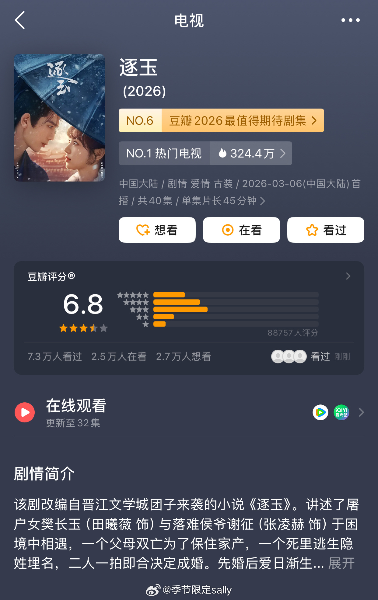 逐玉db开分6.8分,8.8w人打分
