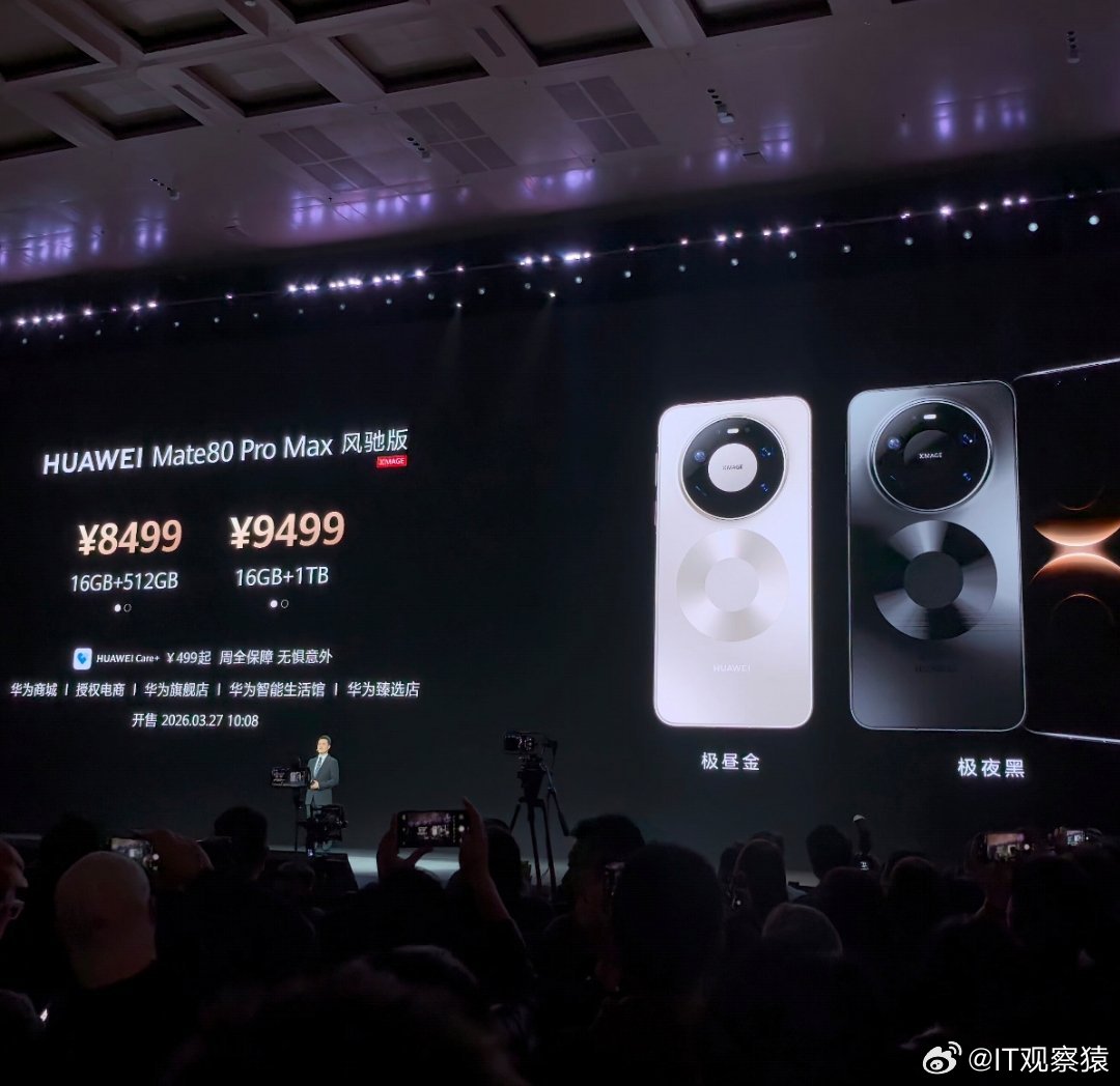 华为发布会华为Mate 80 Pro Max风驰版,首发搭载华为风驰散热架构,采用业界首创隐藏式无感出风设计,8499起售。