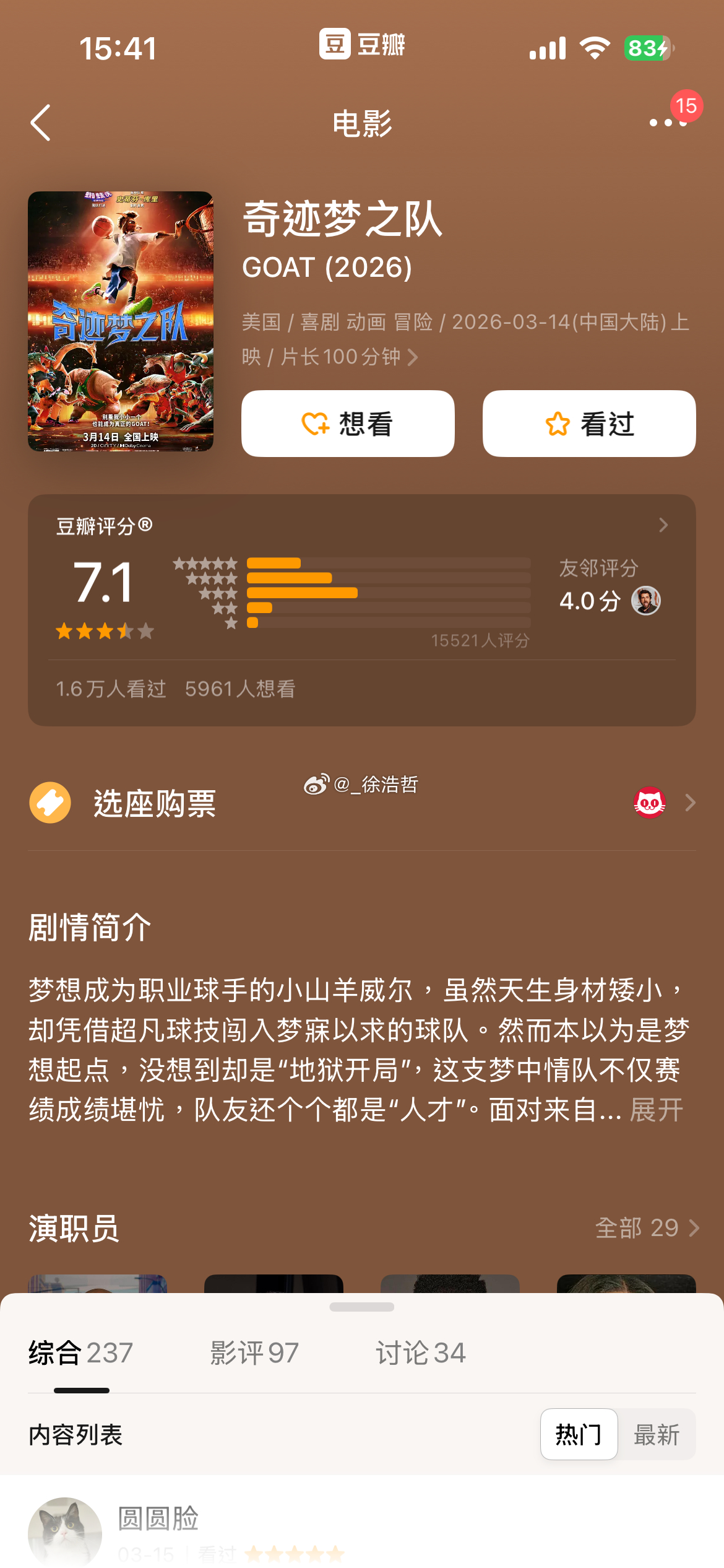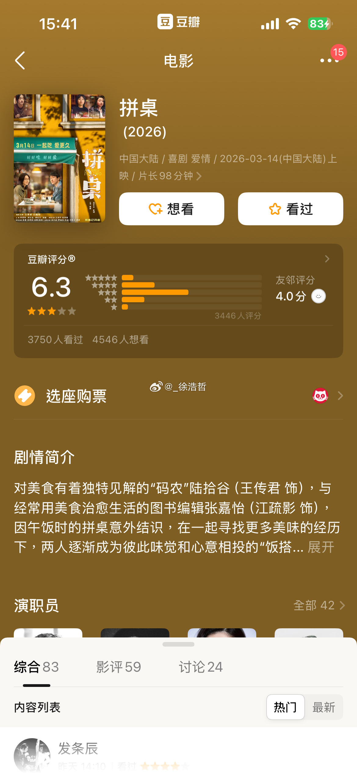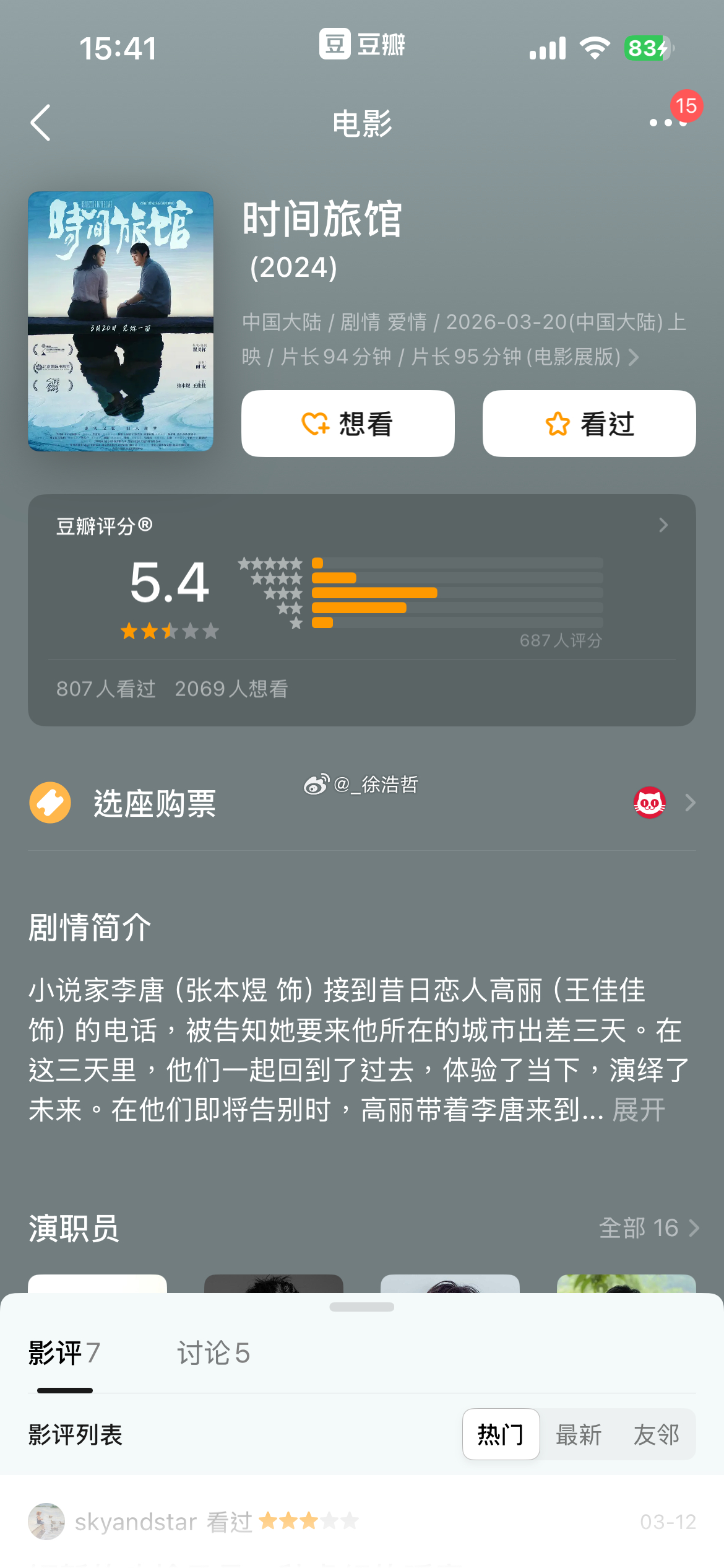 3月又一波电影豆瓣开分了拼桌 6.3时间旅馆 5.4奇迹梦之队 7.1 2月情人