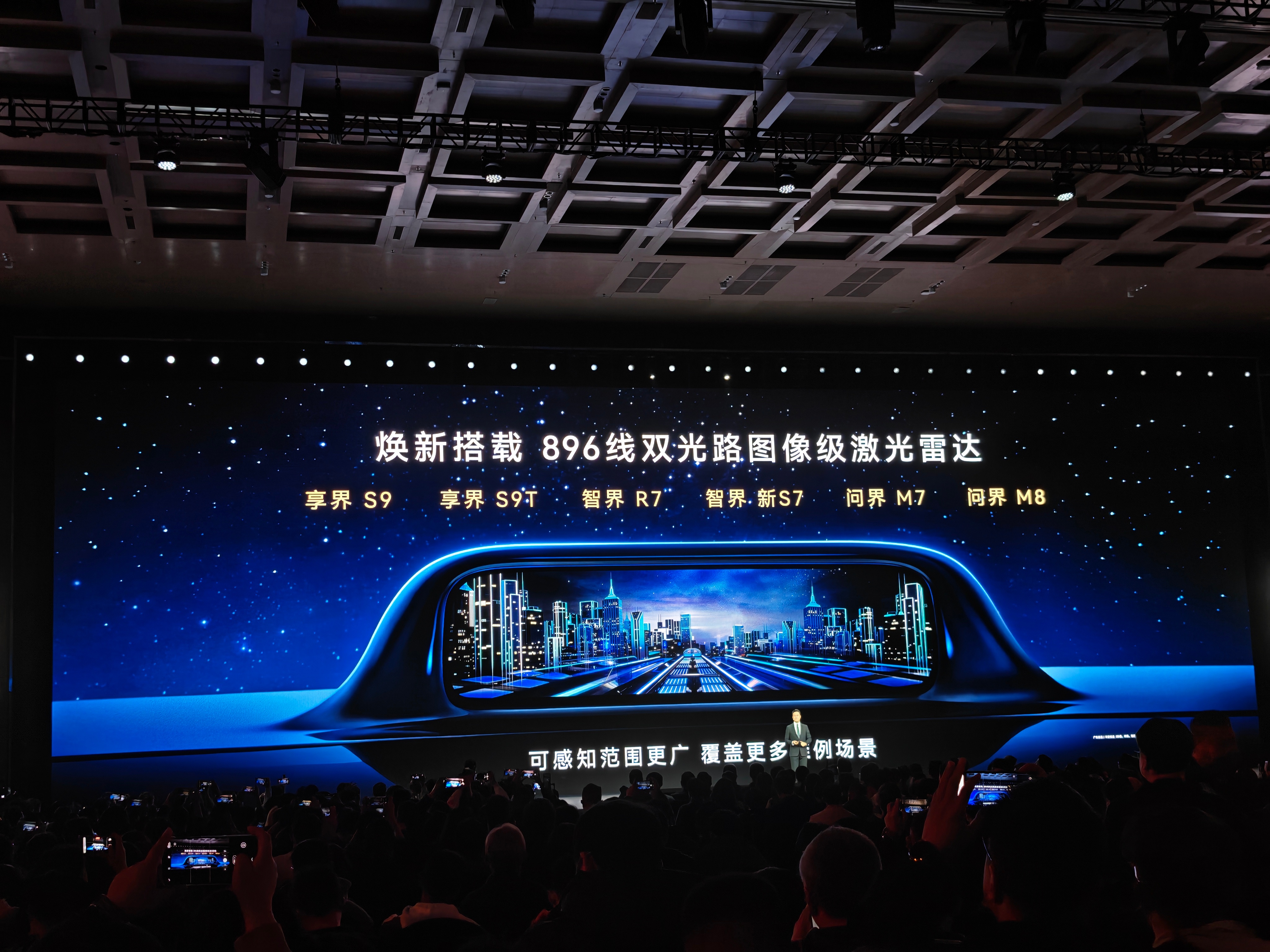 鸿蒙智行焕新的几款新车型,全系搭载896线激光雷达。