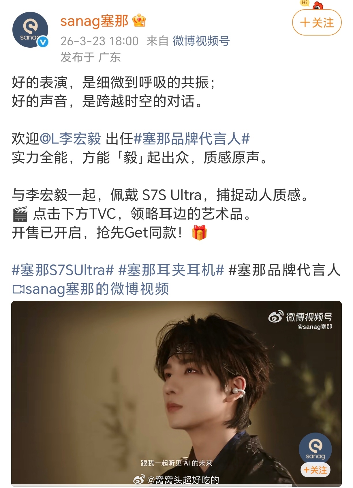 李宏毅 塞那品牌全线代言人正式官宣!大帅哥气质出众,品牌很有眼光了2026宏e新
