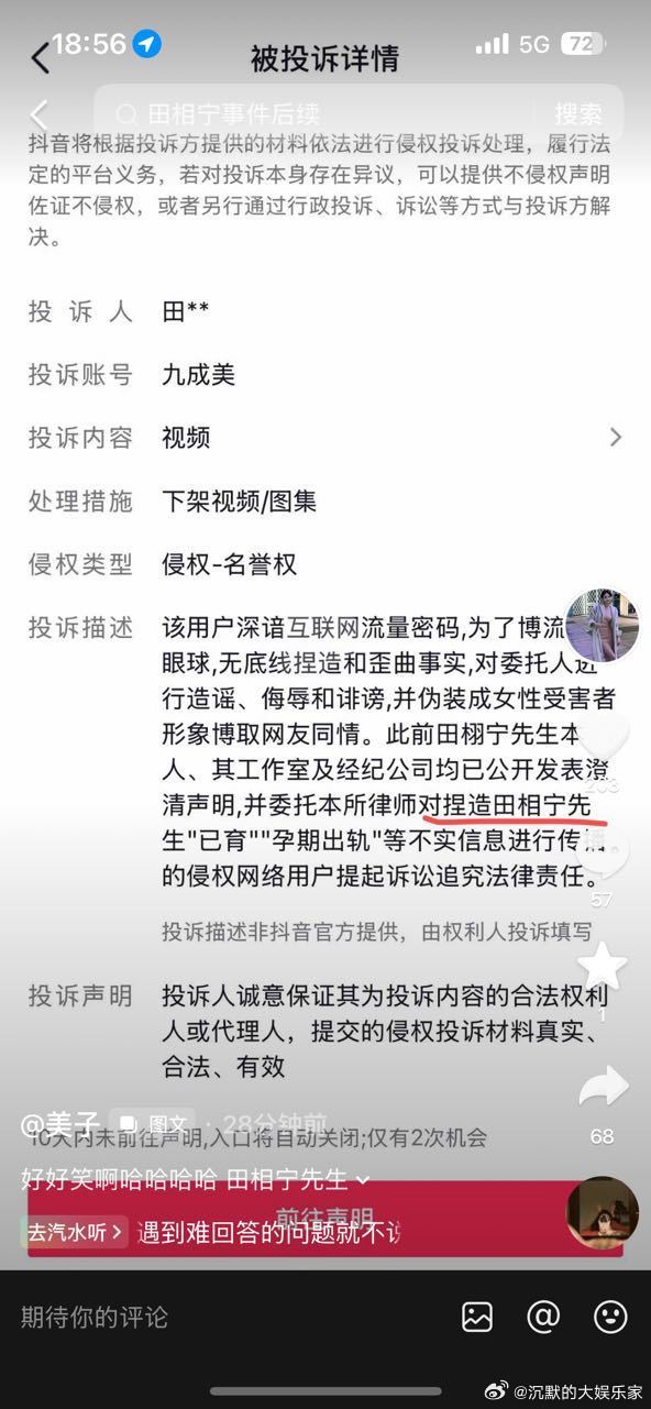 田栩宁起.诉了,但九成美一直发发发,她的意思就是:虽然你田栩宁告我侵害你的名誉权了,但因为你一直不还我买的钢琴,所以我也要告你侵我的权,你是不当得利。