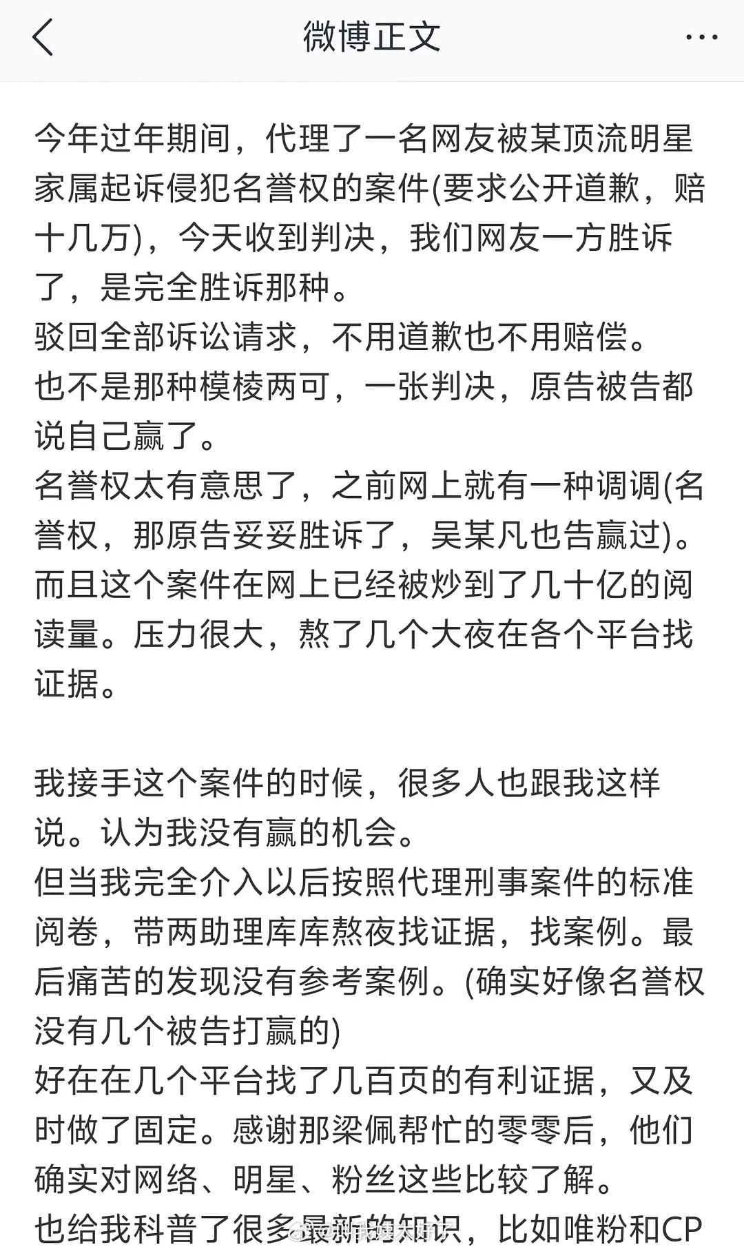 某顶流明星家属起诉侵犯名誉权,结果败诉了。这是说的谁?
