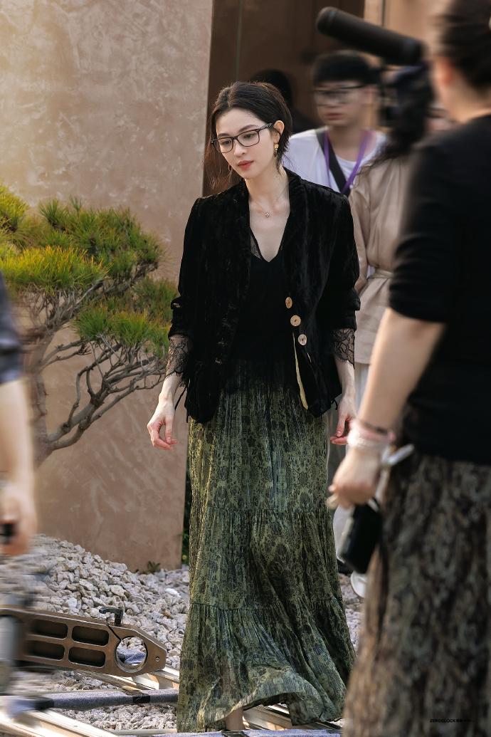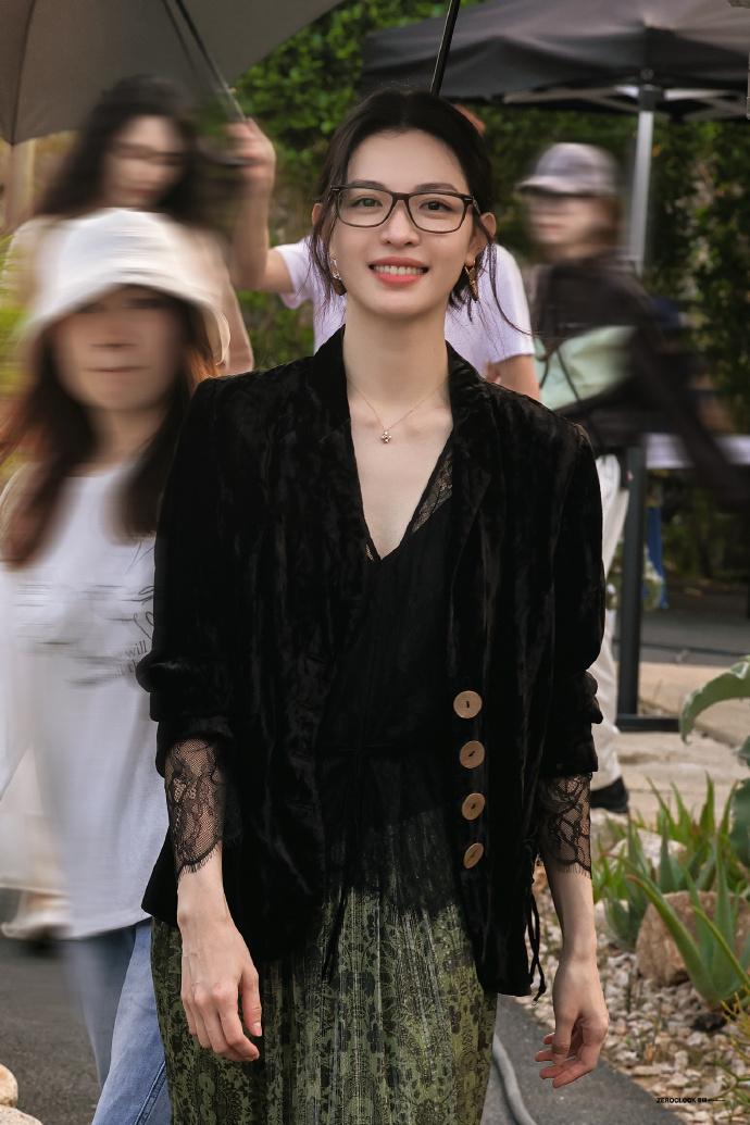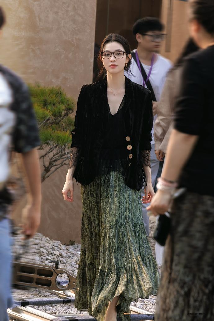 近日钟楚曦在外出的时候搭配的很漂亮,像个靓丽的少女,也很有国际超模风采。 她里面穿黑色蕾丝打底衫,里面还套着一件绿色的碎花裙,增添了飘逸之美,气质超好。 钟楚曦脚踩黑色的夹趾拖,走路的时候有种潇洒随性的魅力,确实是特别的时尚。 她外面套着黑色的修身西装,整个人显得很有风度,还格外的酷。 钟楚曦这次特意把头发挽了起来,同时戴着黑框眼镜,像个颇具浪漫风情的文艺少女,不得不说钟楚曦这次的搭配效果太完美了。